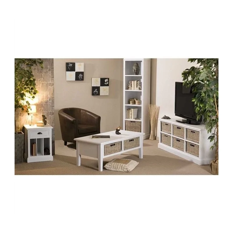 Praktyczny i bardzo przyjemny dla oka stolik kawowy. Dzięki wiklinowym koszykom które niewątpliwie dodają uroku meblowi - nie ma bałaganu bo można pochować tam wszystkie bibeloty takie jak pilot do tv czy gazetę dla mnie świetne rozwiązanie. Jestem zadowolona z zakupu.