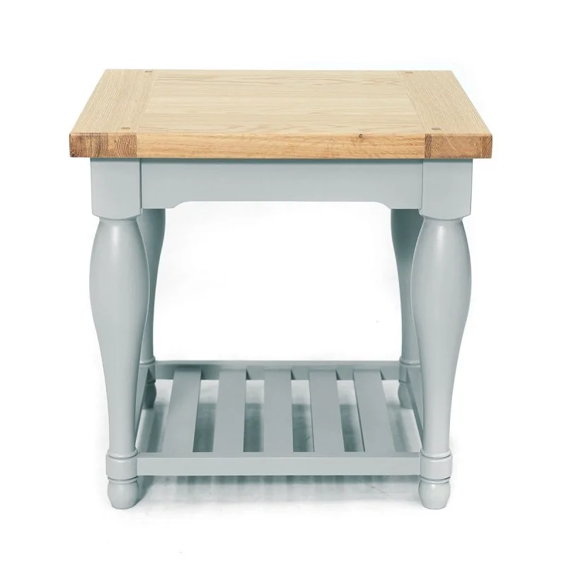Stolik kawowy prowansalski Alicja to ciekawy stolik wyróżniający się proporcjonalnym kwadratowym blatem. Pomimo tworzenia wrażenia niedużego, w rzeczywistości mebel zaspokaja potrzeby związane z serwowaniem popołudniowego podwieczorku oferując miejsce na filiżanki i słodki poczęstunek. W kompozycji mebla zwracają uwagę pięknie ukształtowane toczone nogi, które – pomimo masywności – są bardzo efektowne i pełne wdzięku. Blat stolika wykonany został z niebarwionego drewna, stanowiąc kompozycję ułożonych poziomo desek na zewnętrznych krawędziach obramowanych dwiema deskami ułożonymi w przeciwnym kierunku. Takie rozwiązanie tworzy ciekawy efekt dekoracyjny. Naturalne drewno jest też typowym symbolem bliskiego związku z naturą, tak charakterystycznego dla dawnej Prowansji. Stolik kawowy prowansalski posiada również dodatkową dolną półkę wykonaną z listewek oddzielonych niewielkimi prześwitami, dzięki którym całość jest lżejsza i delikatniejsza. Stolik kawowy prowansalski Alicja to piękny stylowy mebel idealny do małych pokoi, na patio lub do wnętrza o wielu funkcjach.