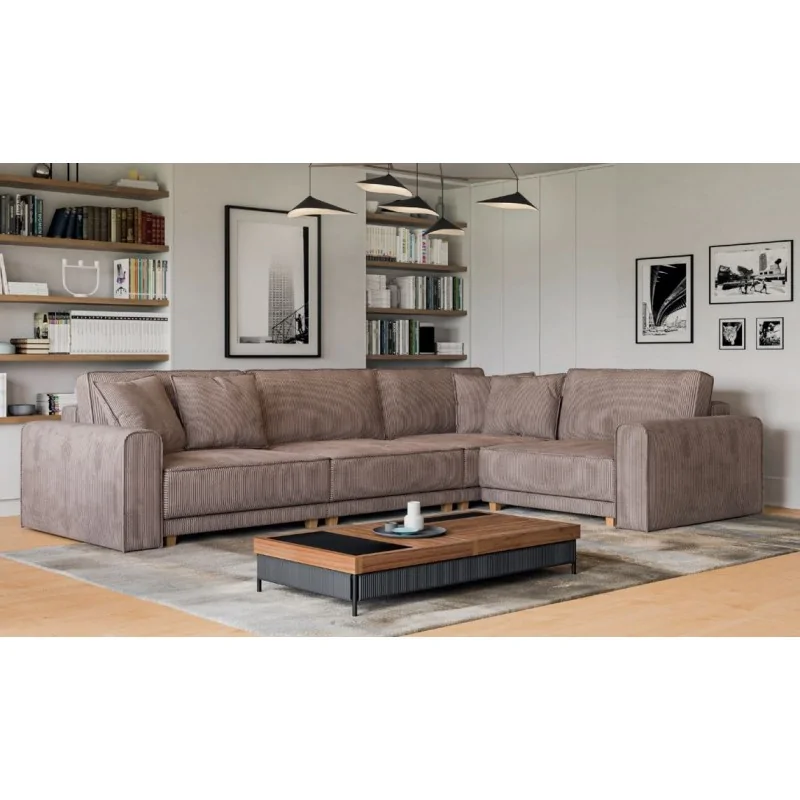 Ten narożnik modułowy Yuuko o imponujących wymiarach 343x243 cm to prawdziwa perełka wśród mebli tapicerowanych. Jego elegancki, minimalistyczny design w ciepłym, beżowym odcieniu doskonale współgra z nowoczesnymi i klasycznymi wnętrzami. Szerokie siedziska i poduchy oparciowe zapewniają nie tylko wygodę, ale także wyjątkowy wygląd, który podkreśla luksusowy charakter narożnika. Modułowa konstrukcja pozwala na dostosowanie mebla do indywidualnych potrzeb użytkownika.