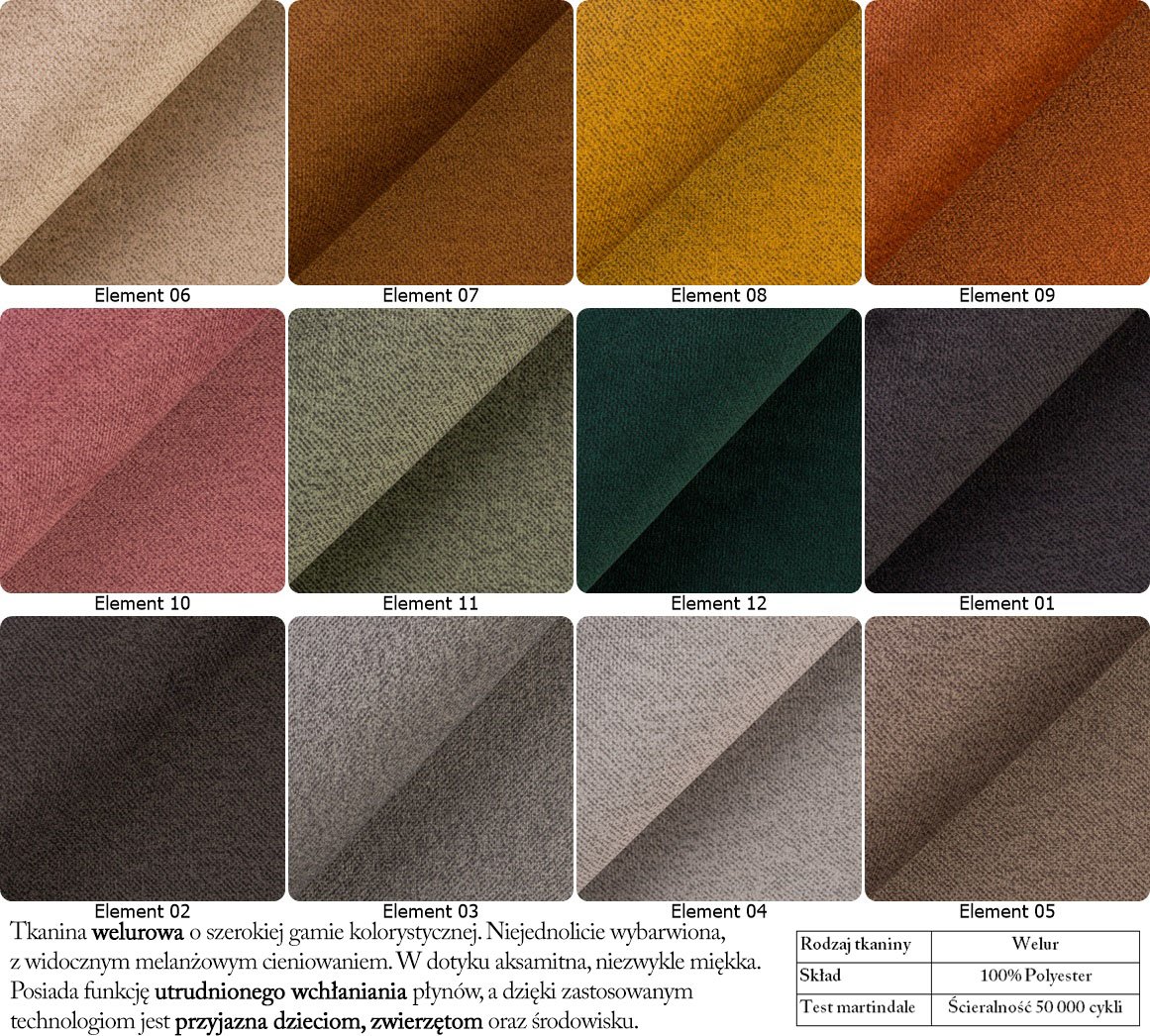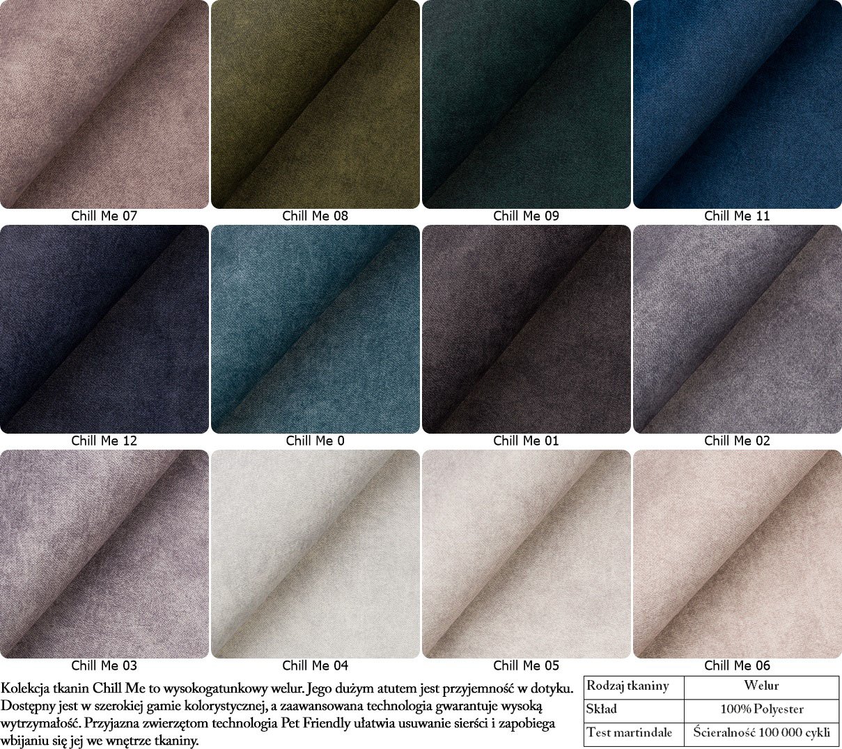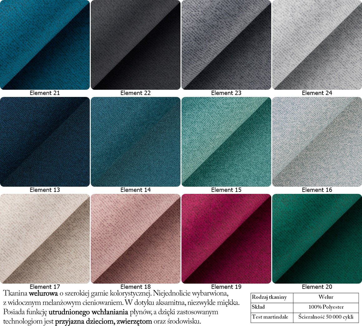 - Siedzisko wypełnione jest pianką wysokoelastyczną typu HR 30 oraz dwoma rodzajami sprężyn: bonnel typu pocket (kieszeniowe) i sprężyny faliste