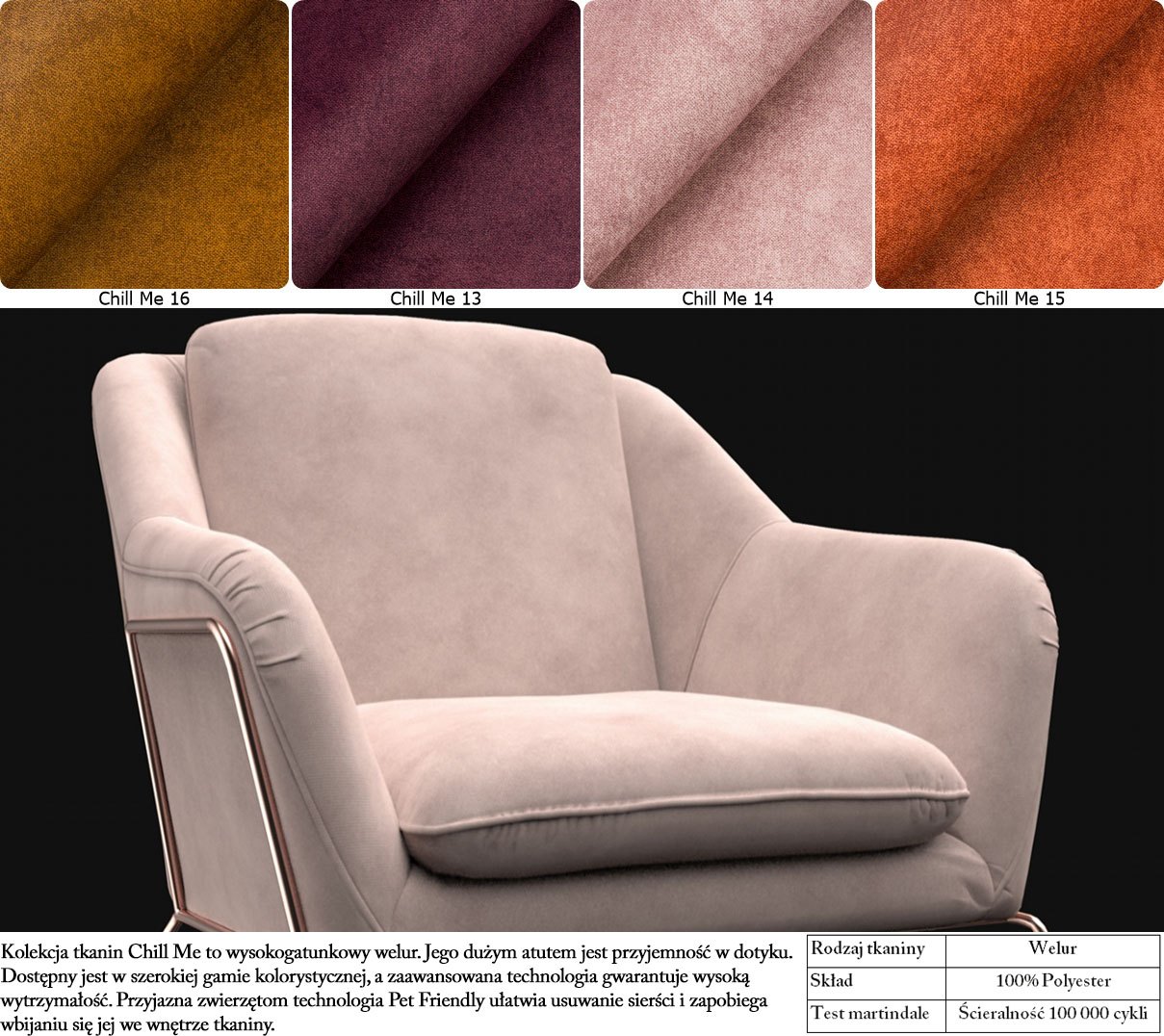 - Wypełnienie oparcia: sprężyna bonell + pianka wysokoelastyczna typu HR + pasy tapicerskie