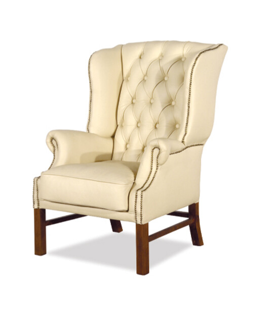 - Zgrabne, wyprofilowane podłokietniki z dekoracyjnymi pineskami tapicerskimi