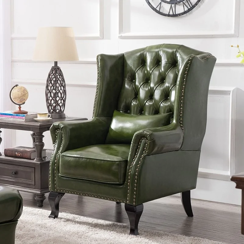 Tym, co wyróżnia prezentowany model, jest wysokie, pikowane oparcie wraz z poduszką, ozdobne szwy z ćwiekami, profilowane podłokietniki oraz solidne, drewniane nóżki. Całość solidnej konstrukcji wykonana została z drewna oraz płyty, z kolei siedzisko zawiera sprężyny i wysokogatunkową piankę tapicerską. Tak skonstruowany mebel pozwala Ci na odpoczynek w najlepszym stylu, który nie tylko odpręża ciało, ale także relaksuje zmysły. Jeżeli królewski tron jest tym, czego potrzebujesz w swoim salonie, zdecyduj się na uzupełnienie tego zestawu o puf utrzymany w tej samej stylistyce. Szeroka oraz masywna stanie się nie tylko kolejnym pięknym akcentem aranżacyjnym, ale także dodatkowym siedziskiem lub podporą dla nóg.
