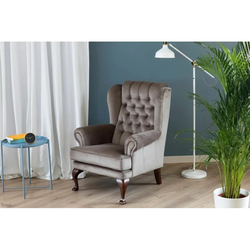Czasami mamy tak, że kiedy po trudnym dniu, usiądziemy w fotelu, nie możemy z niego stać. Tomi to fotel tak wygodny, że nawet kiedy nie jesteśmy zmęczeni, nie będziemy chcieli wstawać. Czytanie książki, oglądanie filmów, marzenia, zbieranie myśli. Każda z tych czynności, na tak wygodnym fotelu będzie czymś niezwykle przyjemnym i owocnym. Możemy postawić go wszędzie, gdzie tylko chcemy i gdzie czujemy się najlepiej. Stwórzmy sobie przestrzeń tylko dla nas. Ułatwi nam to zadanie Tomi. Warto wspomnieć także o walorach estetycznych. Klasyczny charakter idealnie wkomponuje się w większość stylów aranżacyjnych. Pięknie wyrzeźbione nogi zwrócą uwagę miłośników detali. Mocne, śmiałe pikowania to kolejny element dekoracyjny, obok którego nie przejdziemy obojętnie. Zaakcentowane podłokietniki, które niczym przyjazne ramiona, otwierają się dla nas. Boczna część, która delikatnie zahacza o oparcie to przemyślany zabieg mistrzów meblarstwa. Sprawia jeszcze większe uczucie otulenia, a także zabezpieczy naszą głowę na wypadek niespodziewanej drzemki.