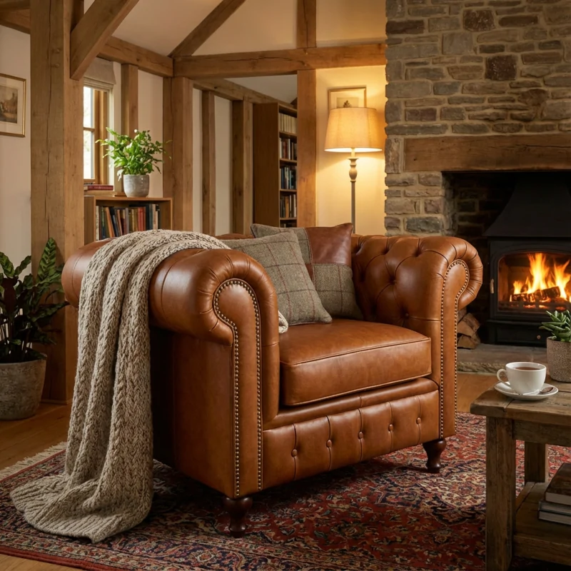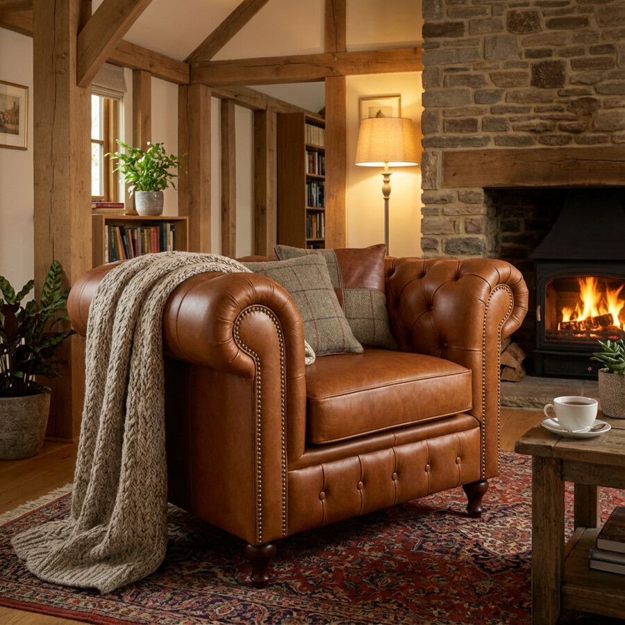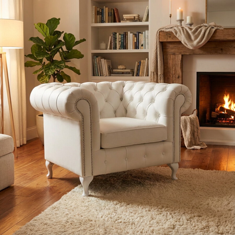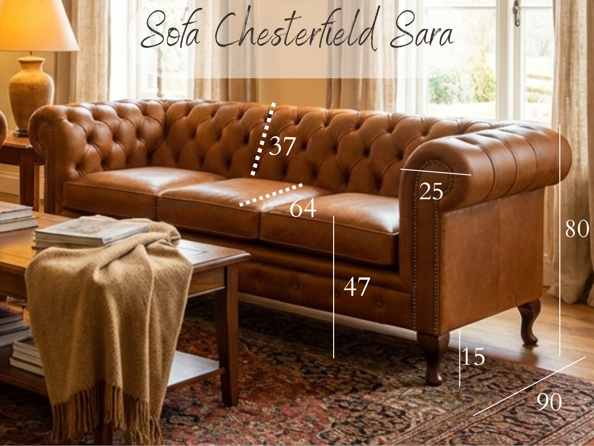 Fotel chesterfield Sara 110 cm w skórze naturalnej