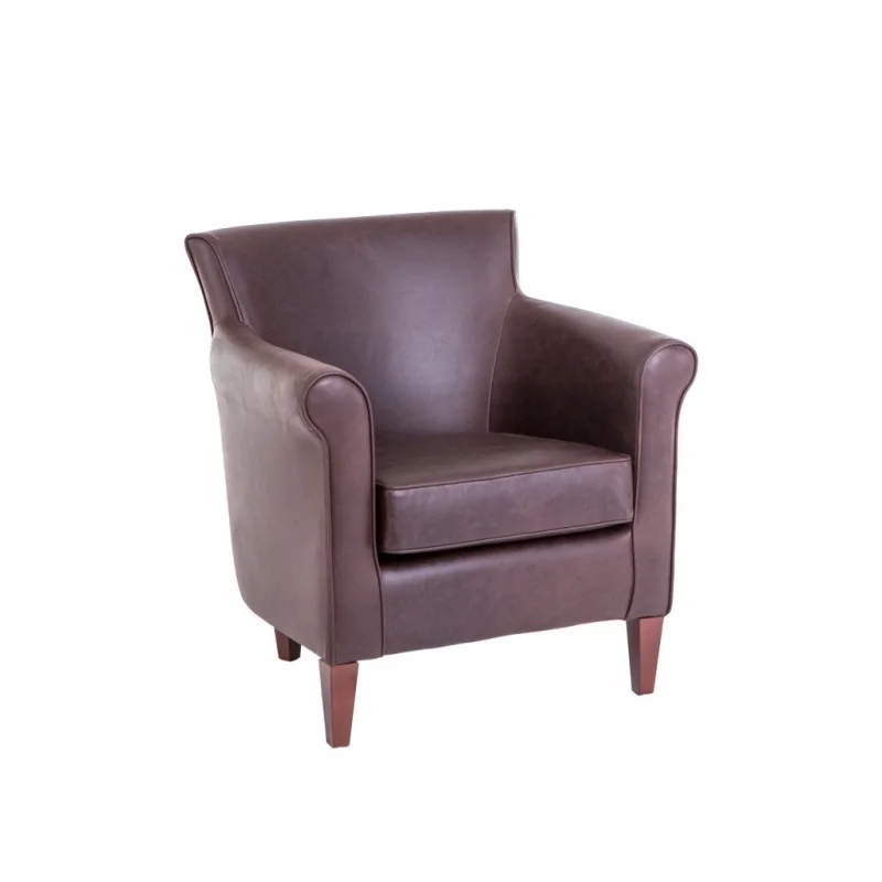 Fotel Crocket jest przykładem nowoczesnego spojrzenia na klasyczny design, przedstawiony w bardziej dopracowanej i starannie wykonanej formie. W kompozycji wyraźnie zaznaczają się cechy mebli angielskich, wyróżniających się zarówno charakterystycznymi, wyokrąglonymi podłokietnikami, jak i profilowanymi nóżkami z drewna. Z tradycyjnego angielskiego designu wyeliminowano jedynie wysokie oparcie z podgłówkami, dzięki czemu kompozycja zyskała na lekkości i wdzięku. Ciekawym elementem, który przyciąga uwagę i decyduje o niepowtarzalnym charakterze mebla jest kształt oparcia, lekko rozszerzonego ku górze, przy okazji korzystnie wpływającego na komfort podczas wypoczynku. Lekko wychylony ku tyłowi kształt zapewnia optymalne podparcie dla kręgosłupa, a dodatkowym odciążeniem jest możliwość wygodnego oparcia rąk na szerokich podłokietnikach. Na komfort wpływa również konstrukcja siedziska wyposażonego w sprężyny faliste i mini-bonell. W stosunku do klasycznych mebli angielskich fotel Crocket jest nieco skromniejszy, ale za to bardzo precyzyjnie wykonany z wyraźnym zaznaczeniem każdego szwu, krawędzi i narożnika. Niezbyt masywna sylwetka sprawia, że jest to idealny mebel także do mniejszych pokoi dziennych i saloników.