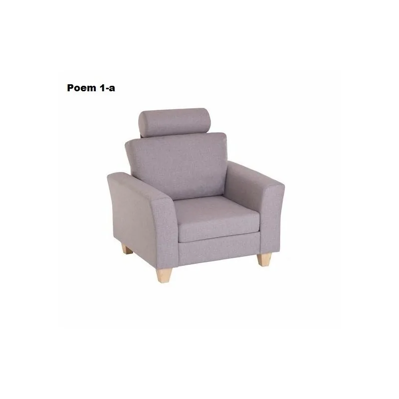 Fotel Poem jest meblem, który już od pierwszej chwili zachęca do zajęcia w nim miejsca i oddania się chwili relaksu. Takie wrażenie tworzy nie tylko sama masywna bryła modelu i wypełniające ją miękkie poduszki, ale przede wszystkim dodatkowy regulowany zagłówek. Kompozycja zaprojektowana jest w stylu nowoczesnym, jednak w jej ogólnym designie zauważa się zarówno cechy wzornictwa angielskiego, jak i skandynawskiego. Do tych pierwszych zaliczają się chociażby masywne drewniane nogi wyszczuplone ku podłodze, tworząc wrażenie delikatniejszych niż są w rzeczywistości. Masywność nóg bywa tu pożądana, ponieważ utrzymują one solidną i rozłożystą konstrukcję góry z równie szerokimi bokami i poduszką oparcia. Dodatkowy zagłówek z jednej strony wysmukla nieco linię niskiego fotela, a z drugiej dodaje mu jeszcze ciężaru, dzięki czemu całość wydaje się być bardzo stabilna i solidna. Tym, co przyciąga uwagę w fotelu Poem jest zapowiedź obiecywanej przez mebel wygody wypoczynku. Szerokie podłokietniki pozwalają wygodnie oprzeć ręce. Wychylone do tylu oparcie to doskonałe odciążenie kręgosłupa a szerokie siedzisko zapewni dość miejsca również osobom korpulentnym, albo pozwoli wygodnie podwinąć nogi podczas czytani książki czy oglądania telewizji.