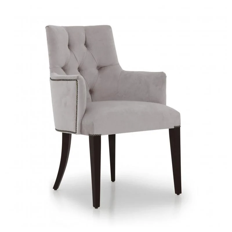 Fotel glamour Alfred to elegancki mebel o oryginalnej formie. Jego dostojna, lecz niezwykle lekka bryła doskonale sprawdzi się we wnętrzach w stylu francuskim, glamour oraz eklektycznym. Zaokrąglone oparcie połączone z wysokimi podłokietnikami nadaje meblowi ciekawego wyglądu. Jego niewielka grubość oraz wysokie, smukłe nogi powodują, że sylwetka fotela Alfred jest niezwykle subtelna i zgrabna. Wrażenie lekkości i nieszablonowości formy mebla potęgują fikuśnie wygięte tylne nogi, które przywodzą też na myśl styl retro. Pikowany detal zaś nadaje całości wytwornego sznytu w stylu glamour.