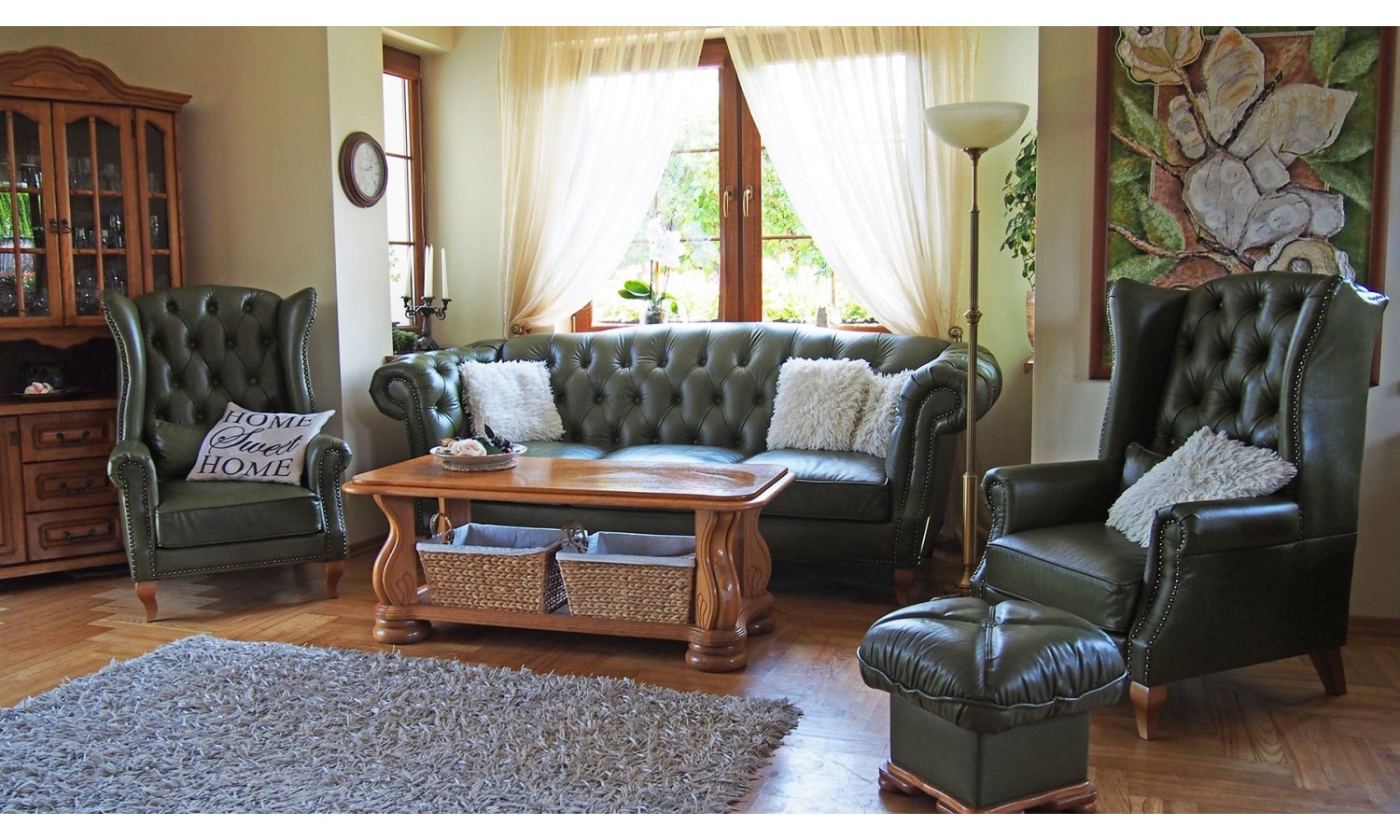 Prezentowany fotel możesz nabyć także w zestawie z kanapą Chesterfield. Komponując komplet składający się z dwóch elementów wprowadzasz do wnętrz harmonię i tworzysz rozbudowaną strefę relaksu, która pomieści kilka osób jednocześnie.