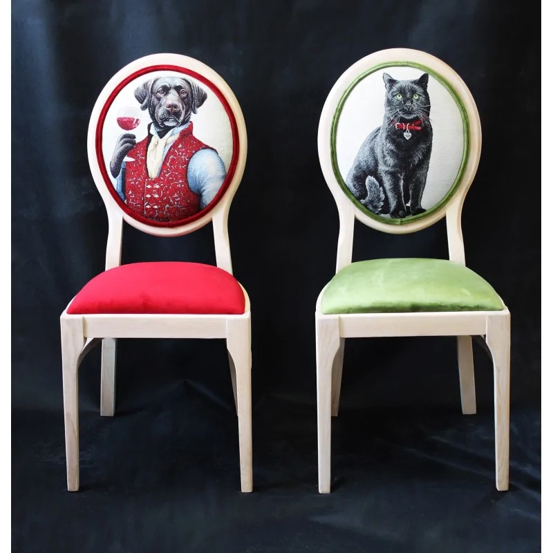 Na oparciu krzesła zastosowano tkaninę gobelinową z kotem lub psem, co nadaje mu wyjątkowy, vintage'owy charakter. Kolor siedziska i lamówki można wybrać spośród dostępnych opcji, co pozwala na pełną personalizację mebla. Dzięki wysokiej jakości materiałom i starannemu wykonaniu, krzesło Vintage Limea to inwestycja na lata, która zachwyci każdego miłośnika stylowych wnętrz. Bezpieczny transport samochodem firmowym na terenie całego kraju zapewnia, że krzesło dotrze do Państwa w idealnym stanie.