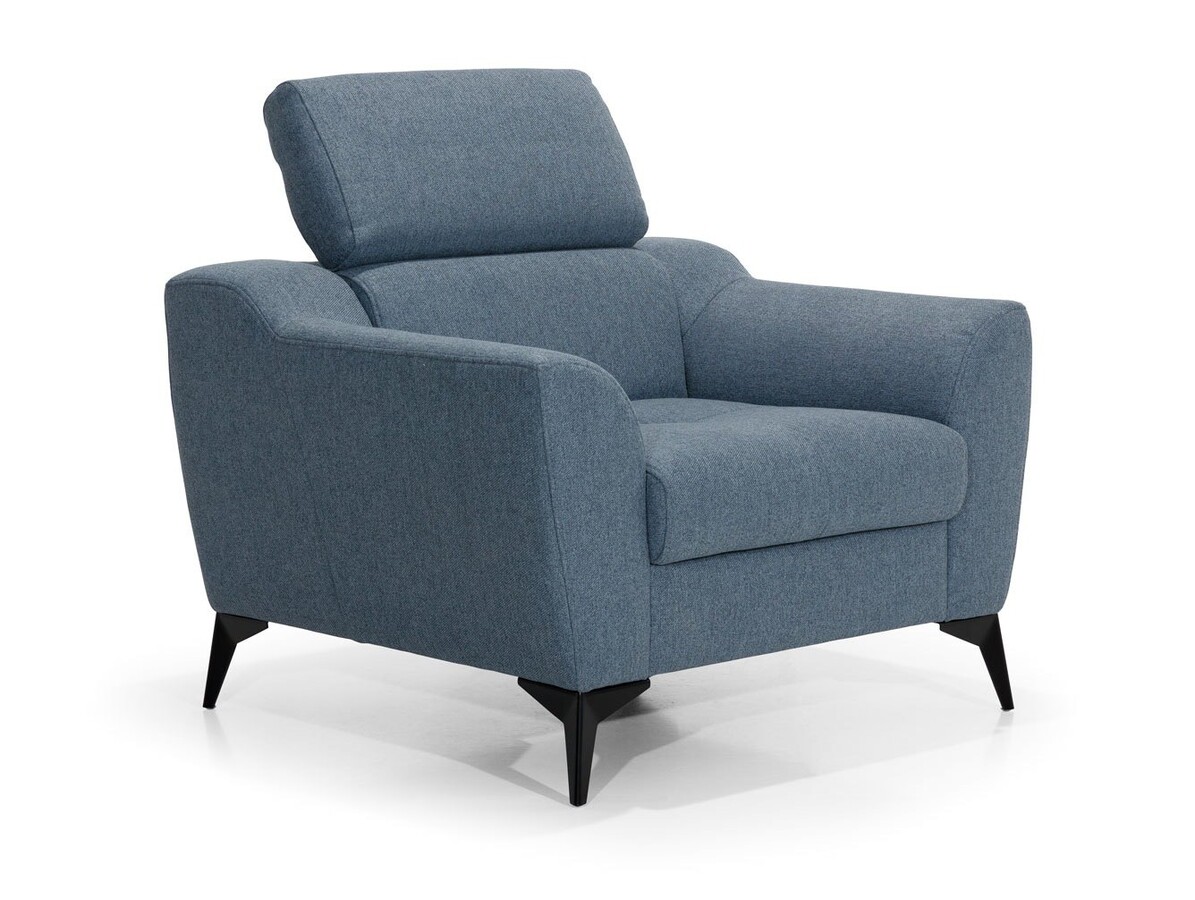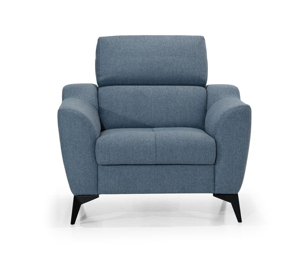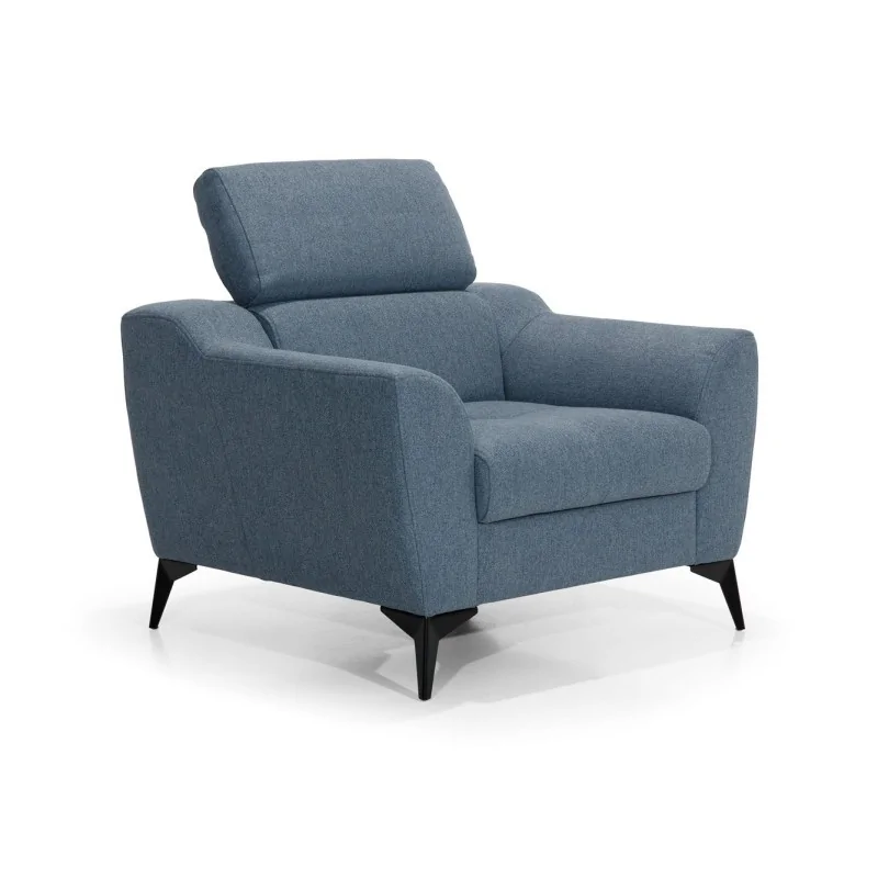 Fotel Madera o szerokości 100 cm to elegancki i komfortowy mebel, który doskonale dopełnia kolekcję Madera. Jego głęboki niebieski kolor dodaje wnętrzu świeżości i wyrafinowania, a proste linie i minimalistyczny design podkreślają nowoczesny charakter. Fotel wyposażony jest w regulowany zagłówek, co zapewnia dodatkowy komfort, umożliwiając dostosowanie wysokości oparcia do indywidualnych potrzeb. Wysokiej jakości materiały oraz solidne wykonanie gwarantują trwałość i wygodę użytkowania na lata.