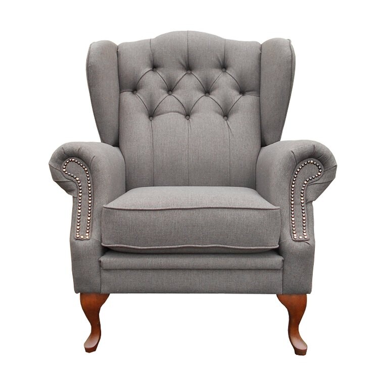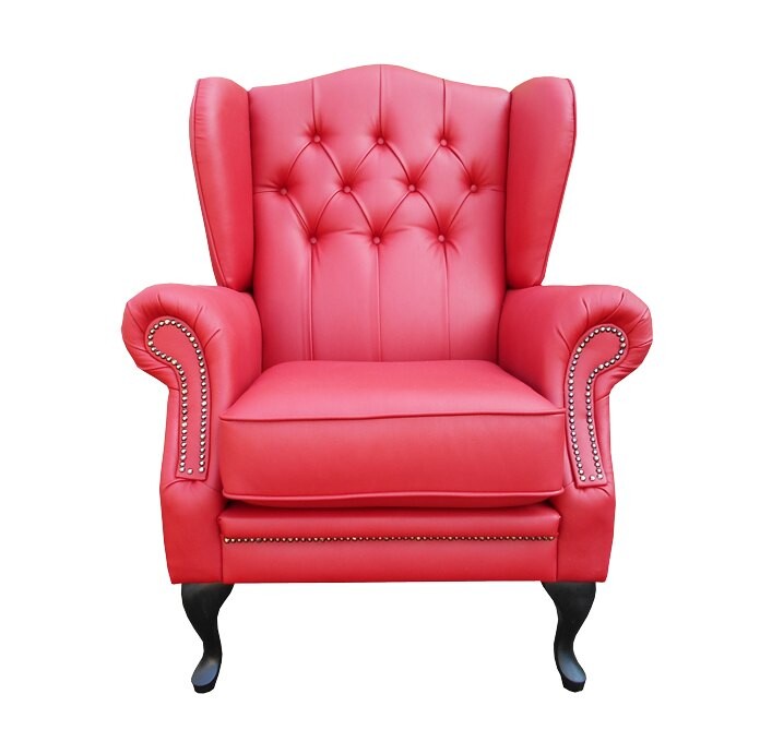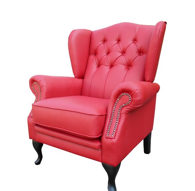 Fotel Chesterfield Uszak Bertiso to klasyczny model fotela w stylu angielskim, który przyciąga uwagę swoją elegancką sylwetką i charakterystycznym wzornictwem. Wysokie, profilowane oparcie z dekoracyjnymi pikowaniami nadaje meblowi wyjątkowy, ponadczasowy wygląd, a obszerne "uszy" po bokach zapewniają komfort i przytulność. Tapicerka w odważnym, czerwonym kolorze w połączeniu z ozdobnymi pinezkami na podłokietnikach dodaje mu wyrazistości i luksusowego charakteru. Całość opiera się na solidnych, wygiętych nogach z ciemnego drewna, które dopełniają klasyczną estetykę tego stylowego fotela. Bertiso jest idealnym wyborem zarówno do eleganckiego salonu, jak i gabinetu, stanowiąc centralny element aranżacji.