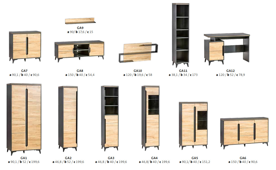 schematyczne rysunki mebli Logan
