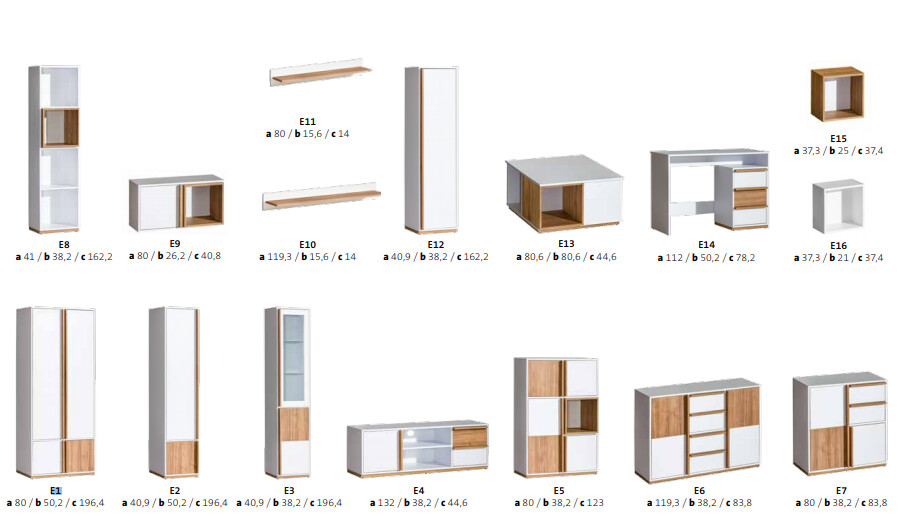 - Kolorystyka mebli Spenser: Orzech Select + Biały Brylantowy