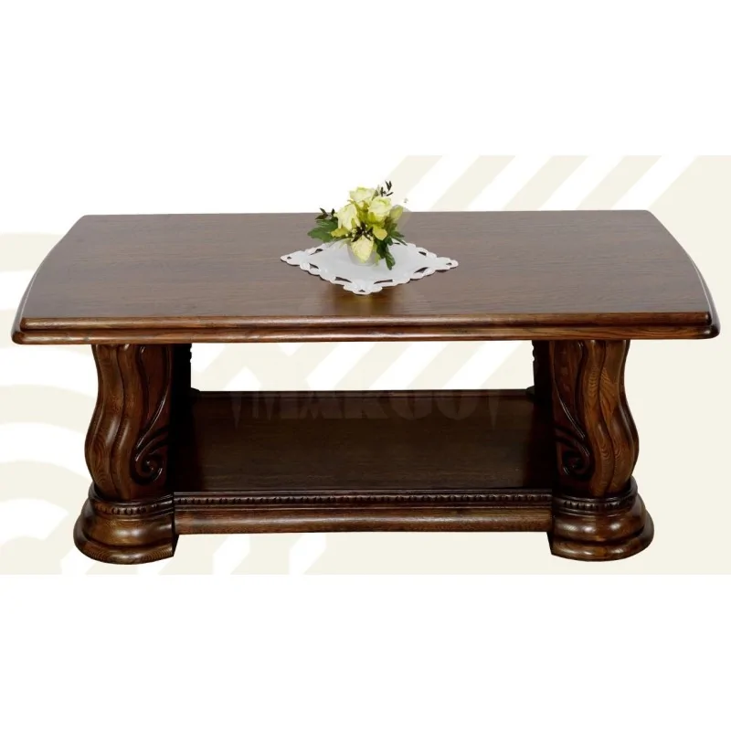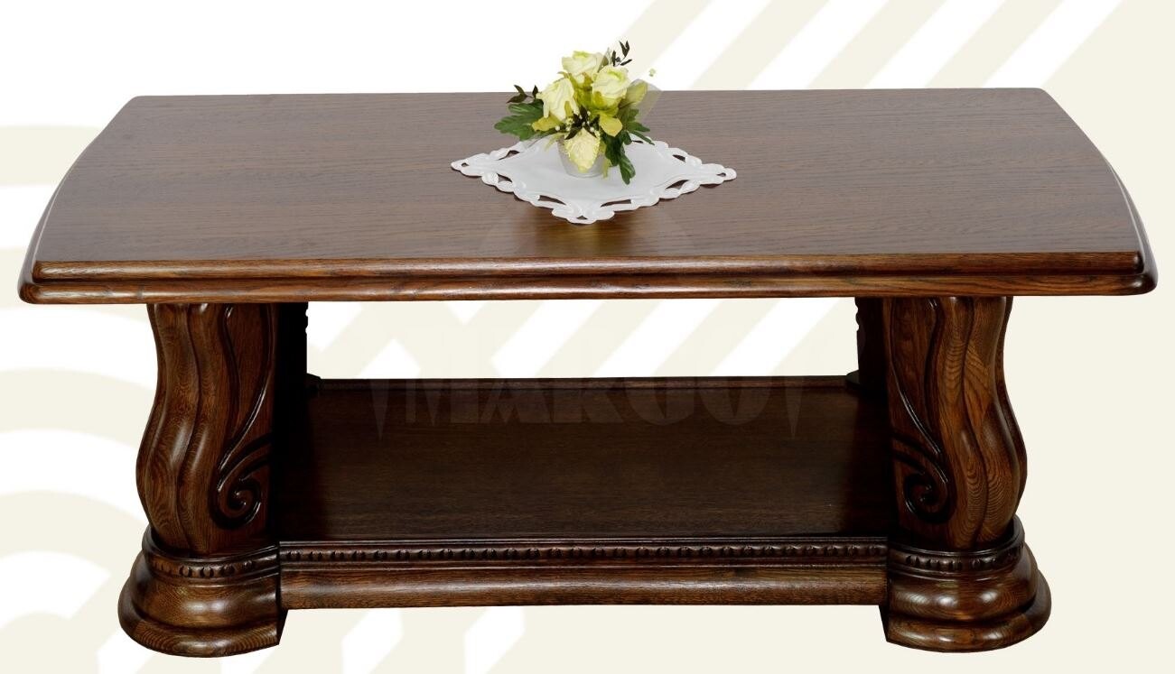 Przyjemność odpoczynku. Mieszkanie, które po prostu cieszy. Komfortowe rozwiązania, które nie tylko pomagają, lecz wzbogacają całą aranżację. Ława Laro jest owocem właśnie tych inspiracji i potrzeb. Jesteśmy bowiem coraz bardziej spragnieni wnętrz, które nam służą, ale też takich, z którymi się definiujemy. Każda decyzja o wyborze ławy do salonu jest poprzedzona licznymi wątpliwościami: czy to wciąż modne? Czy będzie dobrze komponować się z meblami wypoczynkowymi? Z tą ławą możemy być spokojni. Spójrzmy tylko na jej wygląd i przede wszystkim pomyślmy o jej możliwościach względem naszej wygody. Przepiękne zwieńczenia i rzeźby towarzyszą aż do samego blatu. Możemy wybrać wybarwienie drewna, więc z łatwością dopasujemy ją do np. jaśniejszych przestrzeni. Na dole, przy samej podstawie, znajduje się półka, która pomieści wszelkie rzeczy, które do tej pory nie miały swojego miejsca i burzyły porządek.