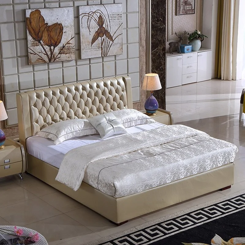 - Łóżko tapicerowane o konstrukcji wykonanej z płyty i litego drewna