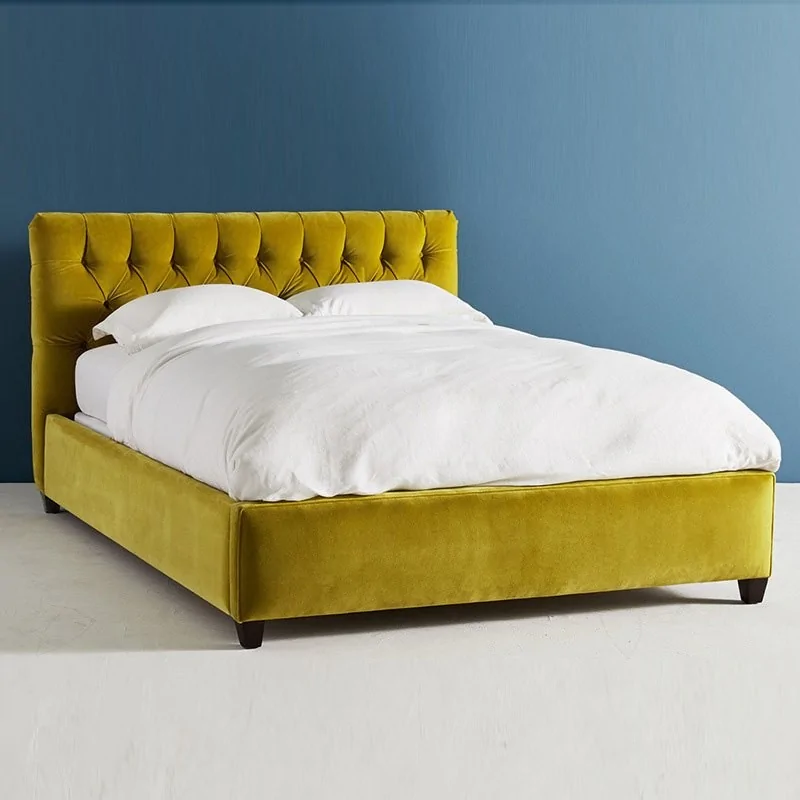 - Łóżko tapicerowane, konstrukcja wykonana z płyty wiórowej i litego drewna