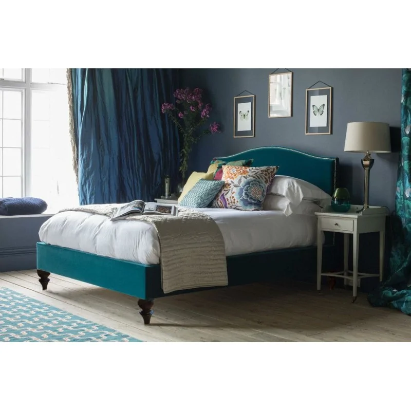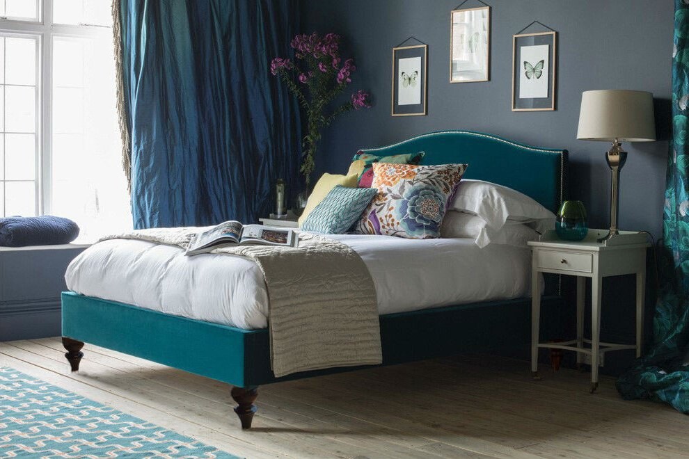 - Łóżko tapicerowane, konstrukcja wykonana z płyty wiórowej i litego drewna