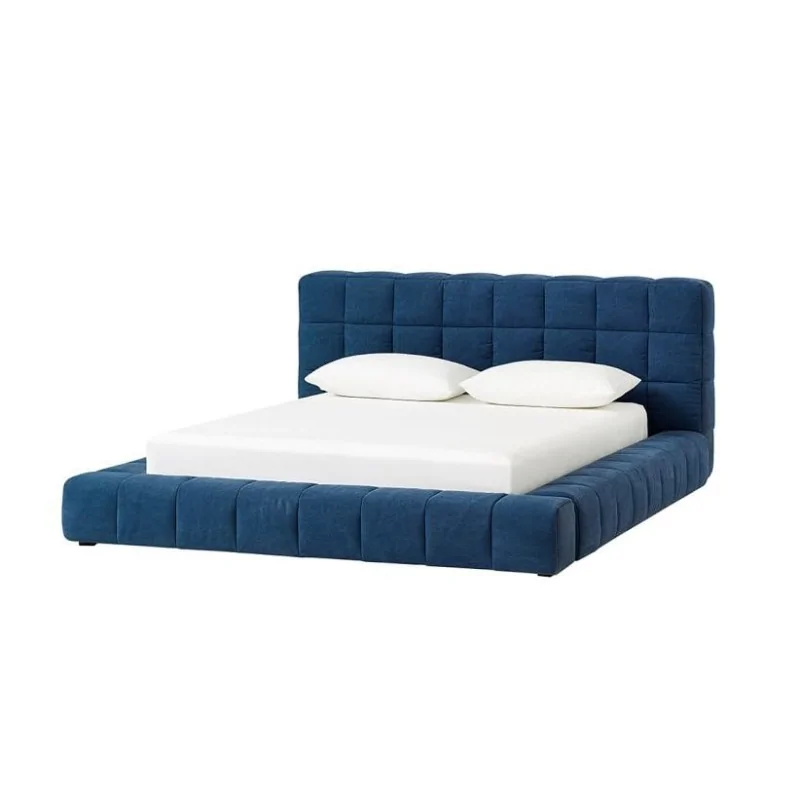 - Łóżko tapicerowane, konstrukcja wykonana z płyty wiórowej i litego drewna