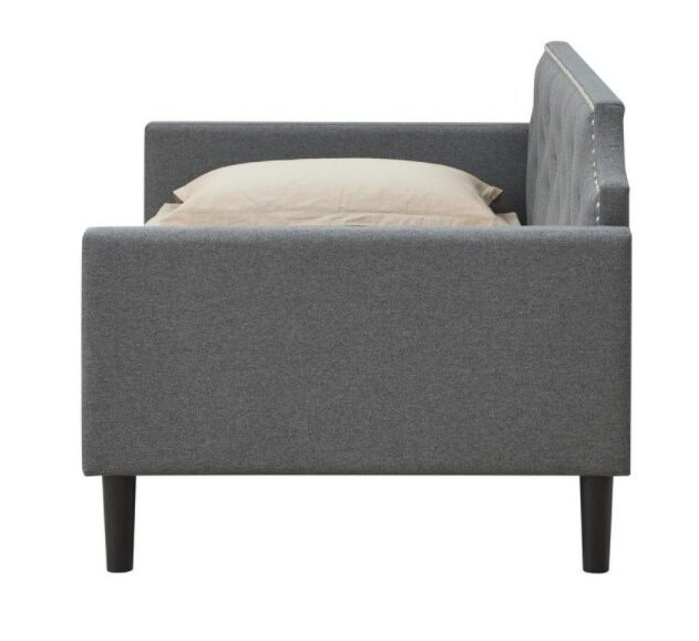 - Łóżko tapicerowane, konstrukcja wykonana z płyty wiórowej i litego drewna