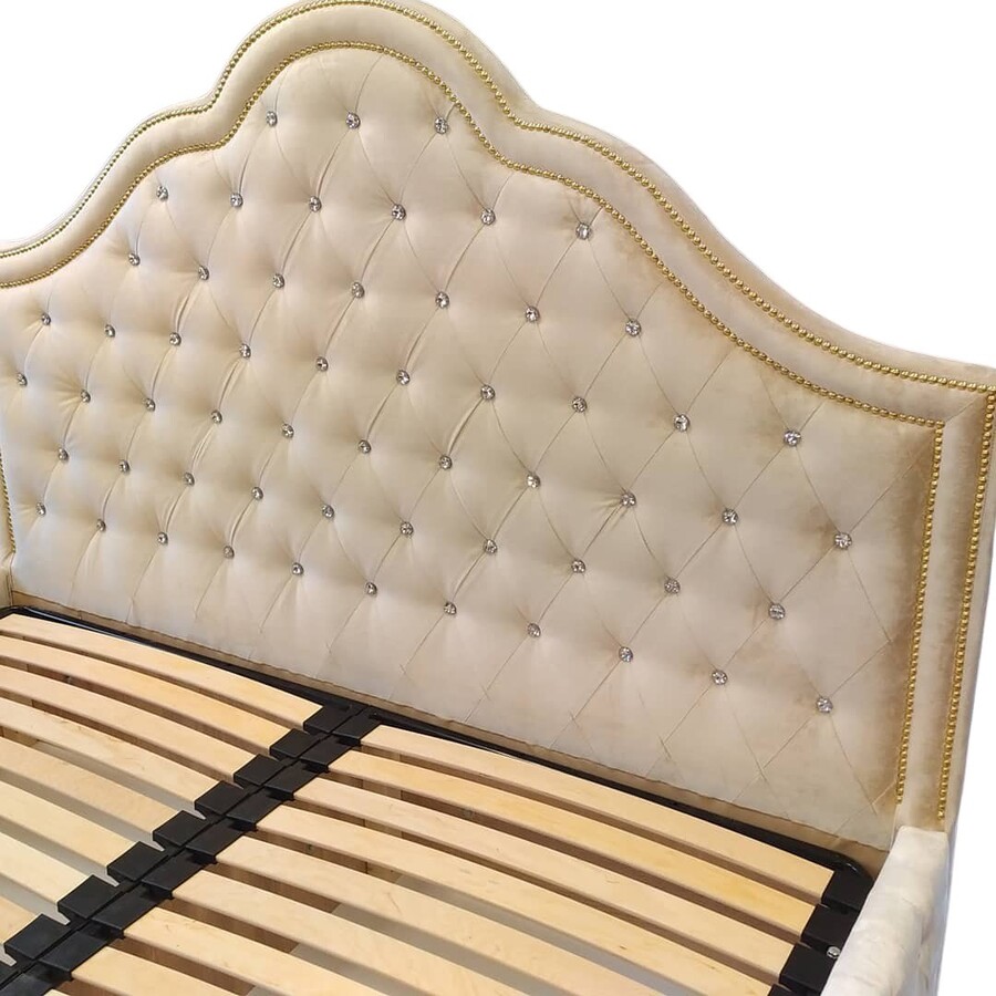 - Łóżko tapicerowane o konstrukcji wykonanej z płyty i litego drewna