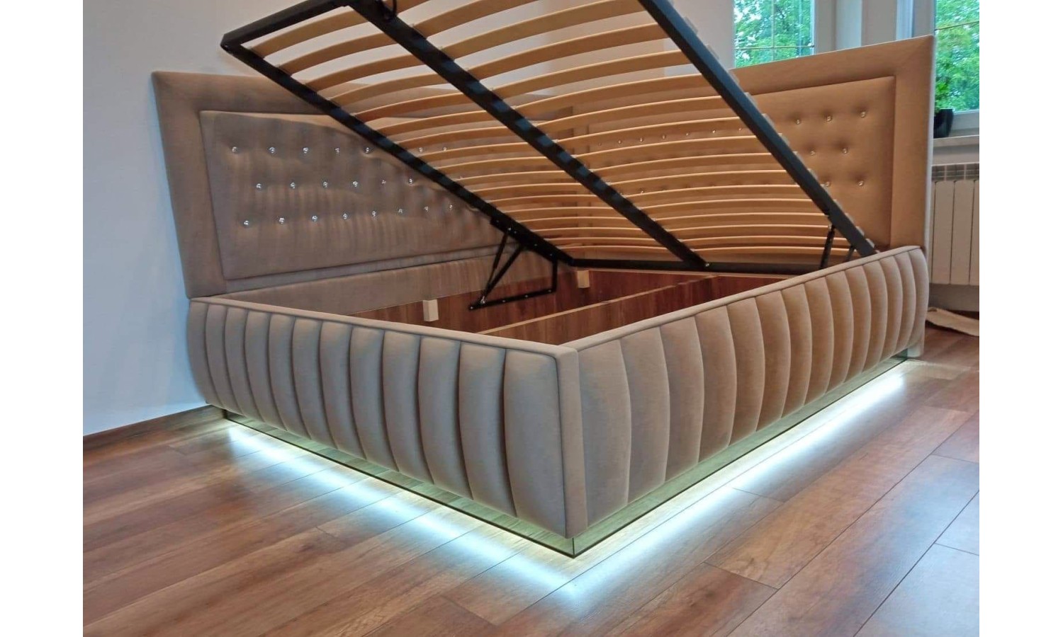 Łóżko Odys wyposażone jest w pojemnik na pościel, co zapewnia dodatkowe miejsce do przechowywania. Możliwość zmiany guzików oraz wyboru innego oparcia pozwala na pełną personalizację mebla. Dodatkowo, łóżko wyposażone jest w oświetlenie LED, które dodaje nowoczesności i funkcjonalności.