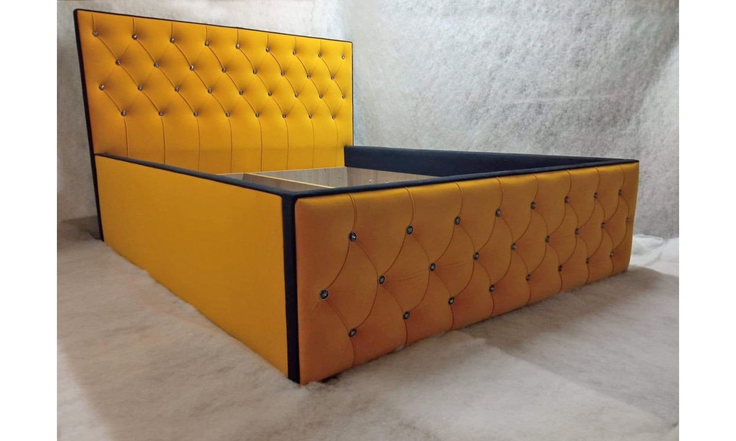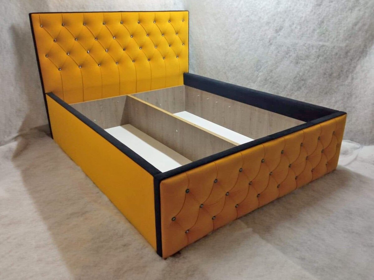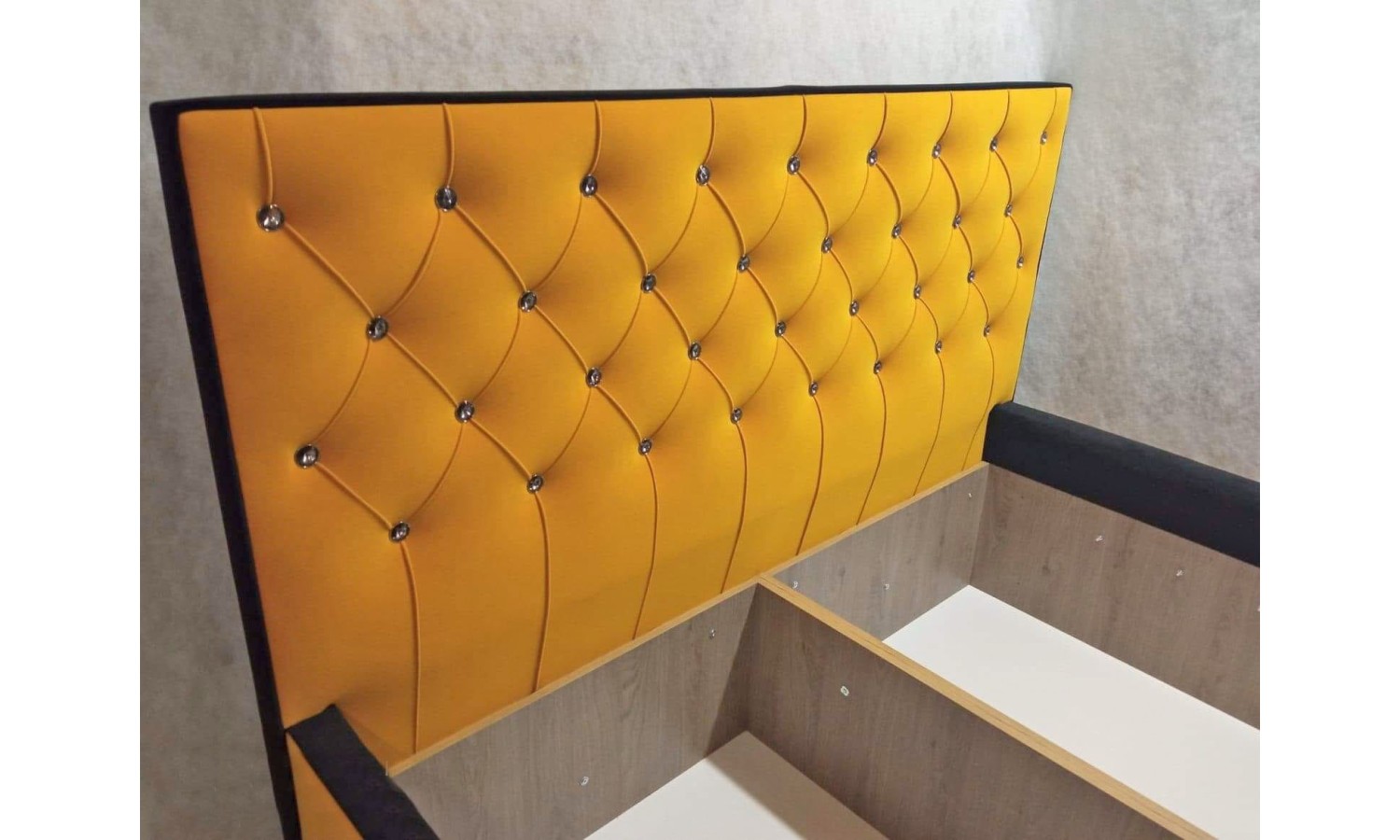 - Łóżko tapicerowane, konstrukcja wykonana z płyty wiórowej i litego drewna