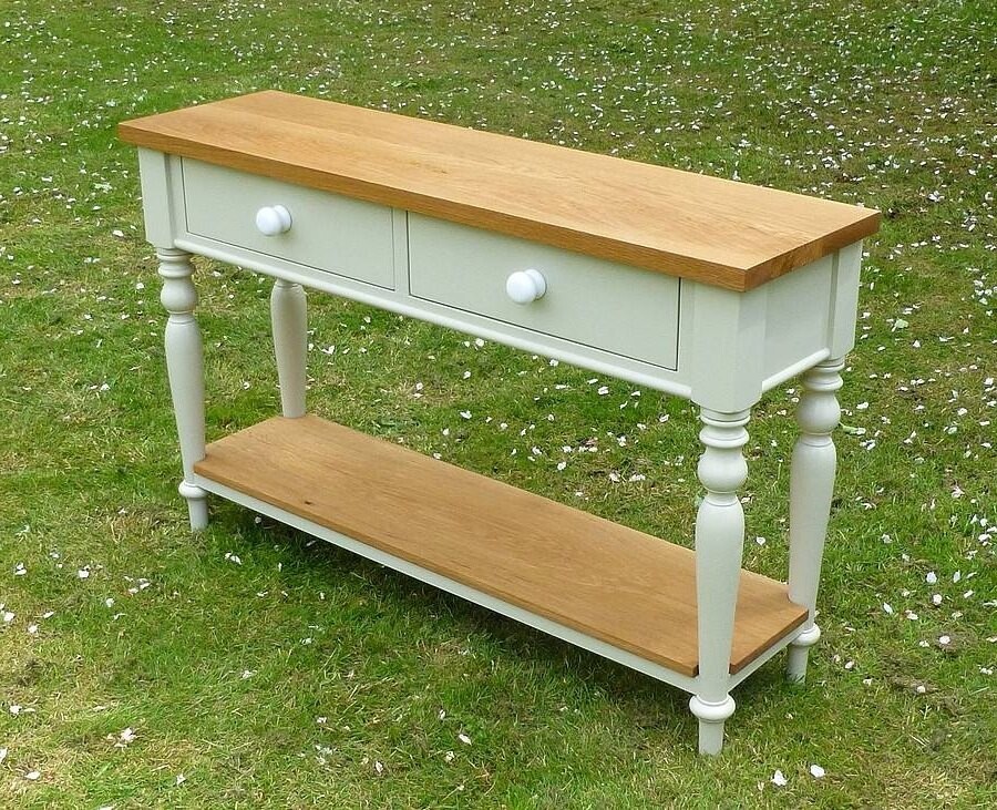 Konsola w stylu rustykalnym Nepo jest typowym przedstawicielem wzornictwa rustykalnego, stanowiącym mariaż prostej formy z bielą lakieru i naturalnym drewnem. W meblu zachwyca wyjątkowo harmonijne połączenie elementów tworzących razem spójną i bardzo elegancką całość. Pomimo cech rustykalnych, konsola nie jest siermiężna i banalna, bowiem z jej sylwetki emanuje elegancja i wykwintność typowa dla dawnych salonów. Specyficzne parametry blatu sprawiają, że mebel doskonale sprawdzi się również w mniejszym pokoju, w którym zintegruje się ze ścianą na podobieństwo szerokiej półki. Wąski blat nie jest jednak mały, bowiem niedostatek szerokości rekompensuje jego długość, gwarantująca wiele miejsca na dekoracje. Konsola w stylu rustykalnym Nepo wyróżnia się białym kolorem i jest wyposażona w drewniany, niebarwiony blat oraz taką samą dolną półkę. Oba elementy ciekawie urozmaicają design i dodają mu naturalnego charakteru mebli z litego drewna, wyróżniających się solidnością i trwałością. Solidności dodaje jej również wysoka rama pod blatem wyposażona w dwie pojemne szuflady. Dzięki nim mebel jest nie tylko piękny, ale i funkcjonalny.