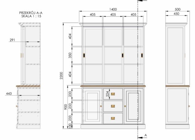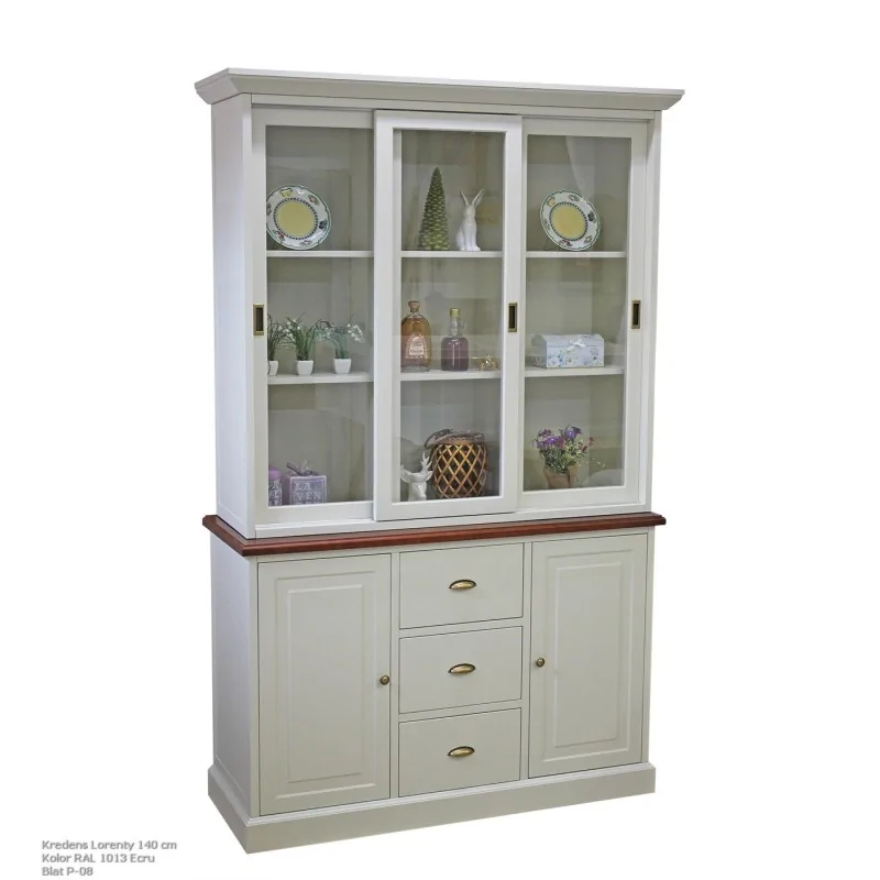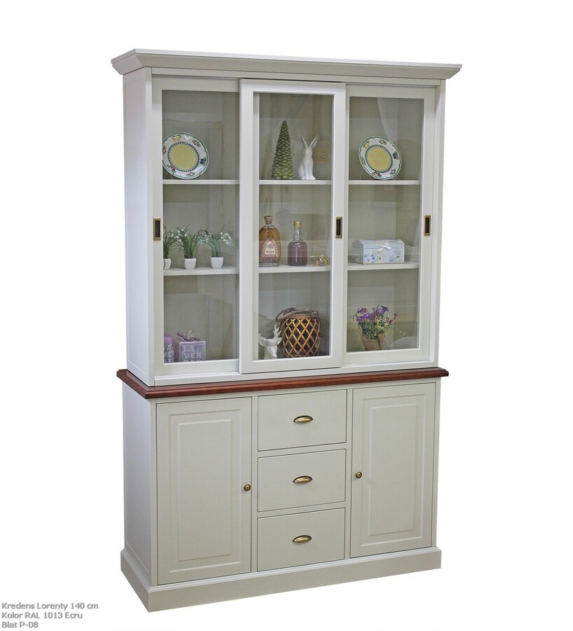 Mebel oferuje pojemne szafki i szuflady, które pomieszczą wszystkie niezbędne przedmioty. Możliwość wykonania półek i wieńca z drewna dębowego sprawia, że kredens można jeszcze bardziej dopasować do indywidualnych potrzeb. Dzięki szerokiej gamie wybarwień z palety RAL / ICA oraz różnorodnym uchwytom, każdy klient ma możliwość pełnej personalizacji mebla. Kredens Lorenty to także opcja wykonania na wymiar i zmiany w konstrukcji, co czyni go idealnym wyborem do każdego wnętrza.