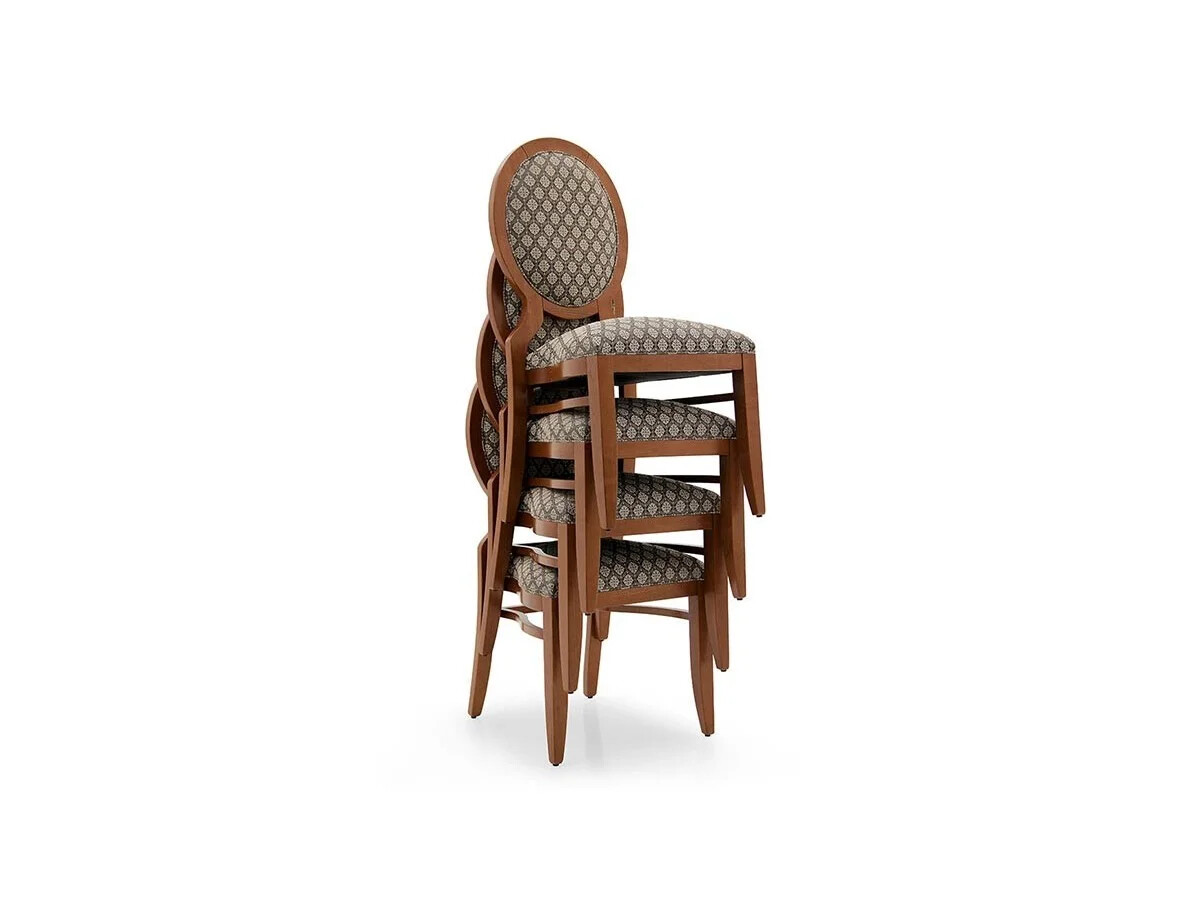 Krzesło stylowe Kobido to klasyka w eleganckim wydaniu, które wyróżnia się subtelną formą i ponadczasowym designem. Owalne oparcie i prostokątne siedzisko tapicerowane są materiałem o delikatnym wzorze, który nadaje krzesłu niepowtarzalnego charakteru. Stelaż z litego drewna bukowego jest wykończony w ciepłym odcieniu drewna, co nadaje całości elegancji i harmonii. Nogi krzesła są proste, co podkreśla minimalistyczny, a zarazem klasyczny styl, idealnie komponując się zarówno w nowoczesnych, jak i tradycyjnych aranżacjach wnętrz.