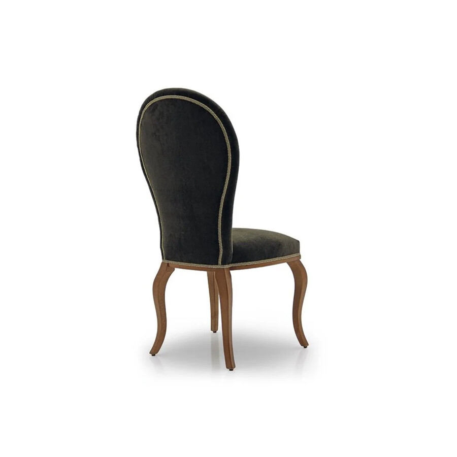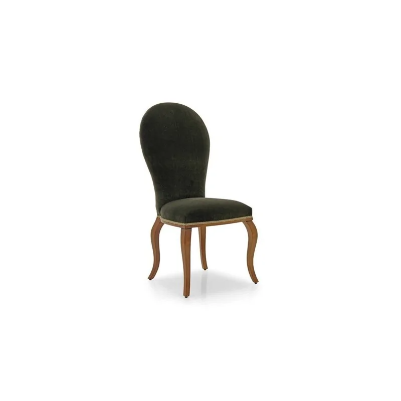 Krzesło Zenobi to przykład wyrafinowanej elegancji w klasycznym stylu, idealnie łączący prostotę z subtelną ozdobnością. Smukłe, zaokrąglone oparcie, tapicerowane miękką tkaniną w głębokim, ciemnozielonym odcieniu, nadaje meblowi szyku i wyjątkowego charakteru. Siedzisko jest przestronne i komfortowe, wykończone elegancką lamówką, która podkreśla jego kształt. Delikatnie gięte nogi, wykonane z drewna bukowego, nadają konstrukcji lekkości, a jednocześnie zapewniają stabilność. Dzięki swojej ponadczasowej formie, krzesło Zenobi sprawdzi się zarówno w eleganckich salonach, stylowych jadalniach, jak i prestiżowych gabinetach.