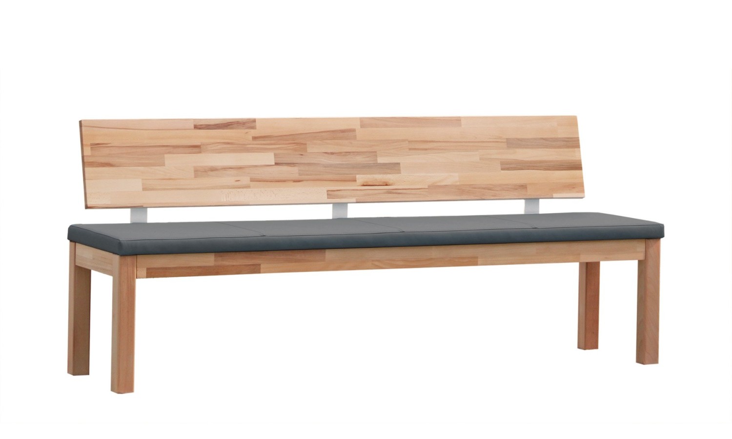 Ławka bukowa Fini jest doskonałym pomysłem na uzupełnienie kuchennego aneksu jadalnego, ale też sprawdzi się w roli mebla wypoczynkowego na patio czy zamkniętym tarasie. Jej atutem jest konstrukcja z surowego drewna, która – uzupełniona odpowiednią tapicerką – wytrzyma znacznie trudniejsze i bardziej spartańskie warunki niż eleganckie meble tapicerowane. Ławka bukowa Fini dostępna jest w wielu wymiarach, a także w postaci narożnika, który doskonale będzie pasować do kuchennego kąta pozwalając na ekonomiczne zagospodarowanie miejsca. Mebel składa się z bardzo prostej, geometrycznej podstawy, jaką tworzy rama nośna siedziska oraz cztery belki ustawionych pod kątem prostym nóg. Uzupełnieniem tej konstrukcji jest miękka, tapicerowana poduszka, której minimalnie przekracza parametry ramy. Takie dopasowanie sprawia, że podczas siedzenia nogi nie mają kontaktu z twardym drewnem. Ławka bukowa posiada również drewniane oparcie, które można, ale nie trzeba, wyposażyć w tapicerowaną wstawkę. Oparcie jest nieco węższe od siedziska, umocowane na dwóch metalowych listwach. Ławka bukowa Fini to nie tylko mebel komfortowy, ale też bardzo funkcjonalny, bowiem nie ma problemu z utrzymaniem go w czystości szczególnie, jeśli stałymi stołownikami są małe dzieci.