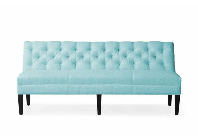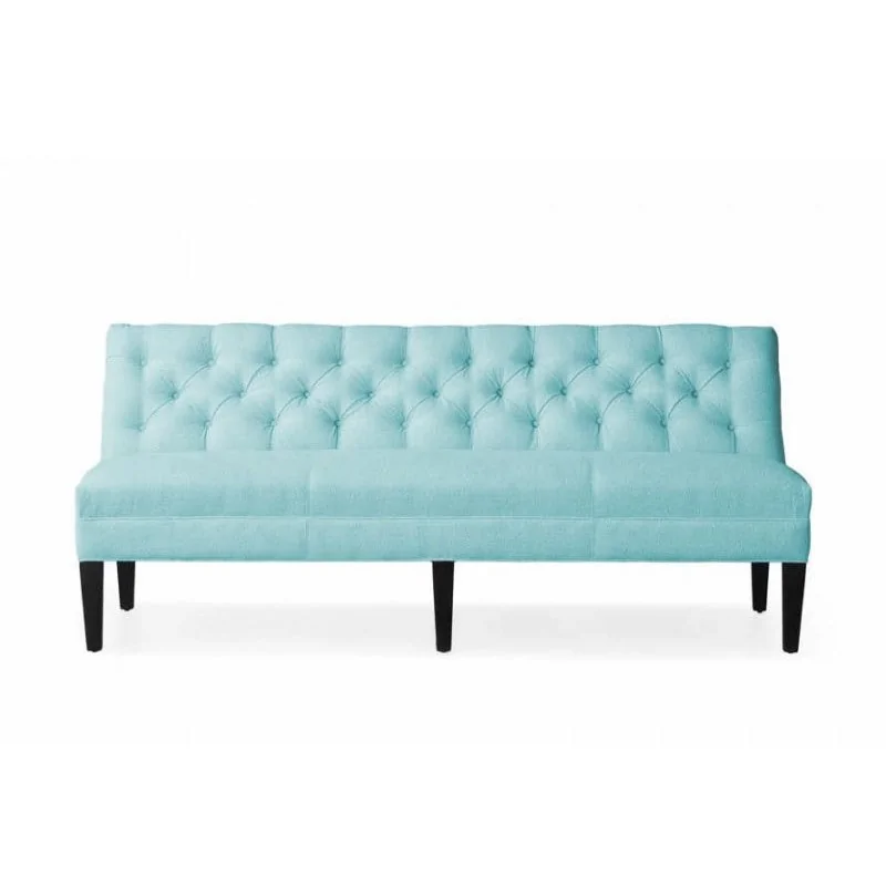 Ławka z oparciem na wymiar Loen prezentuje się niezwykle gustownie, z pewnością urozmaici każde wnętrze. Ławka sprawdzi się w salonie lub jadalni, jako alternatywa dla krzeseł lub narożnika tapicerowanego. Przyda się także w eleganckim przedpokoju. Niezwykle efektownie prezentuje się jej piękne oparcie, elegancko pikowane i wykończone guzikami. Wygodne siedzisko gwarantuje miękkość i komfort. Uwagę zwracają wysokie nóżki, wykonane z drewna. Kolor ich wybarwienia Klient może wybrać samodzielnie, podobnie jak rozmiar ławki i rodzaj materiału obiciowego.
