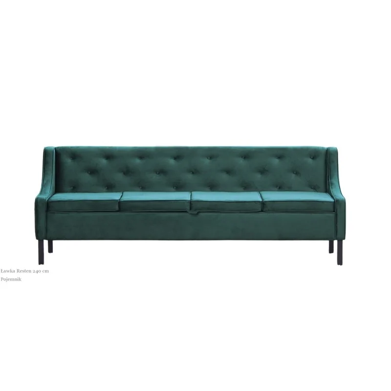Ławka Resten to stylowy i funkcjonalny mebel, który doskonale sprawdzi się w każdym wnętrzu. Jej imponujące wymiary 240 cm zapewniają dużo miejsca do siedzenia, a pikowane wykończenie dodaje elegancji i klasy. Wykonana z wysokiej jakości materiałów, ławka Resten jest trwała i wygodna. Wyposażona w pojemnik, oferuje dodatkowe miejsce do przechowywania, co czyni ją niezwykle praktycznym rozwiązaniem. Jej nowoczesny design i eleganckie wykończenie sprawiają, że doskonale wpas