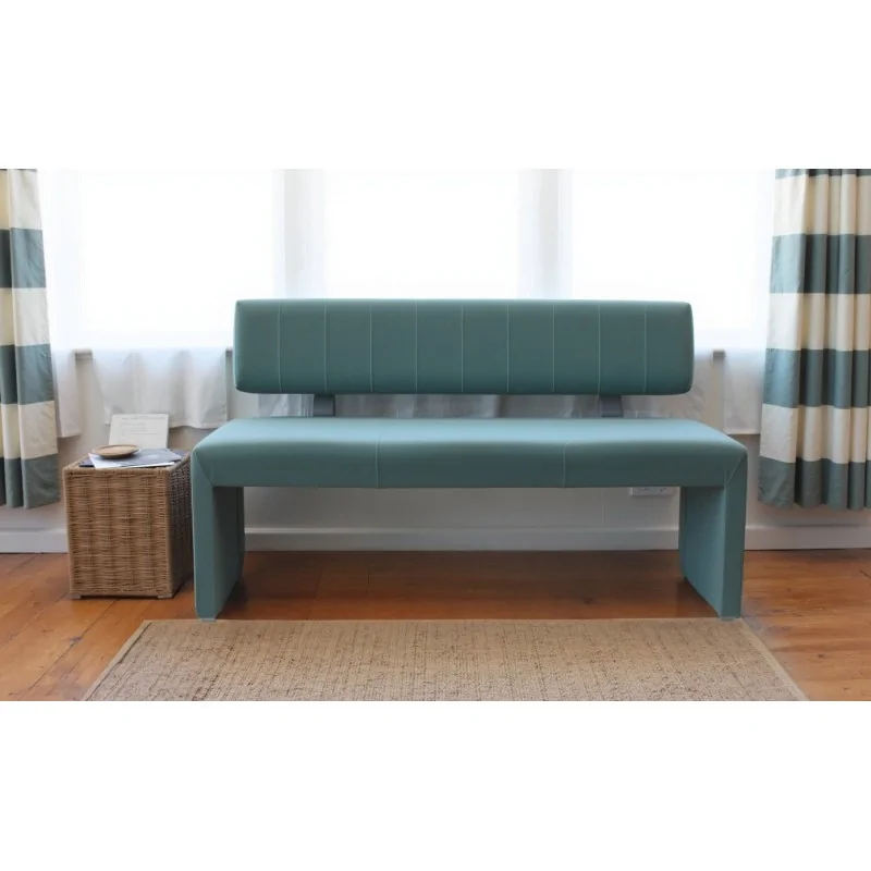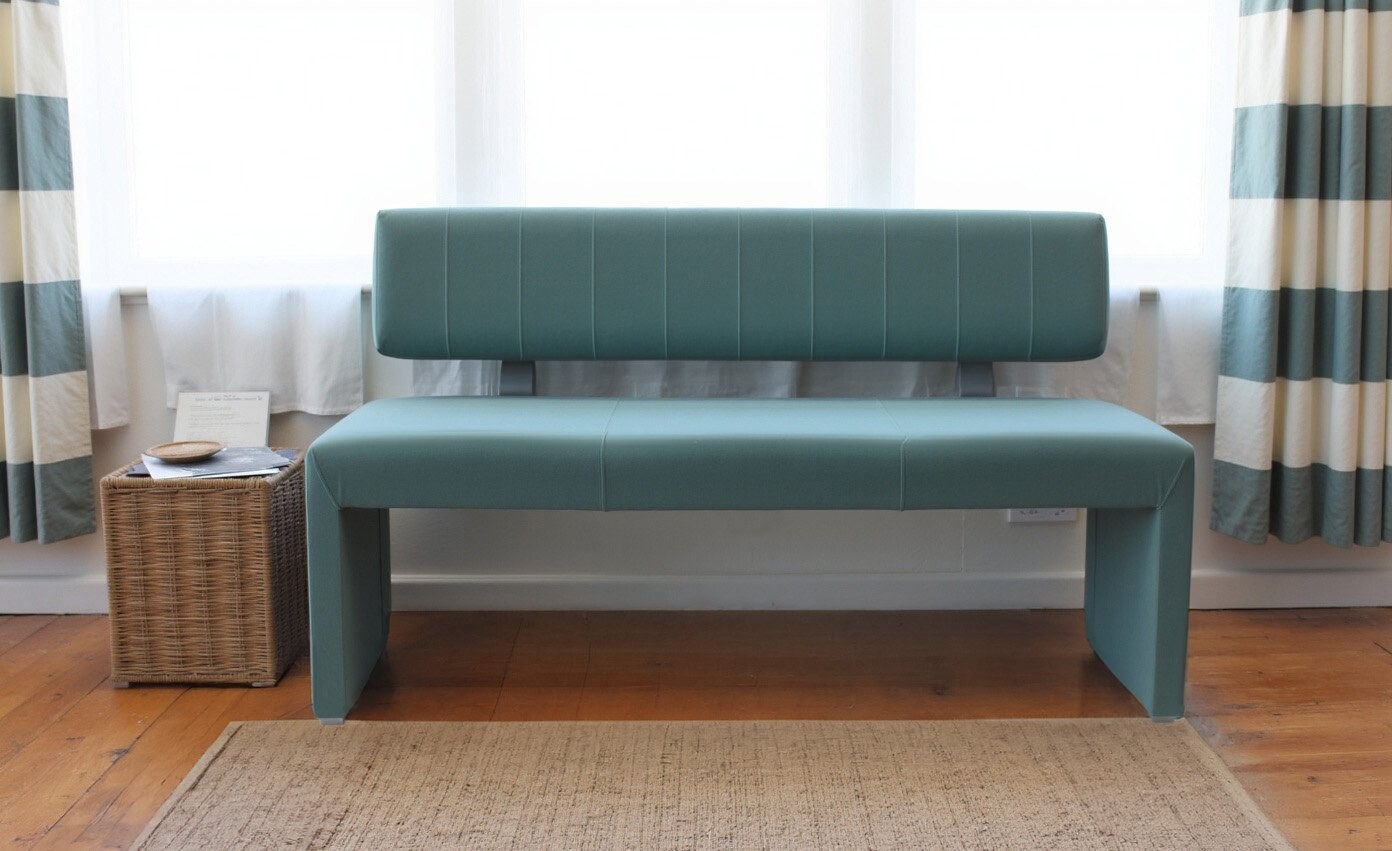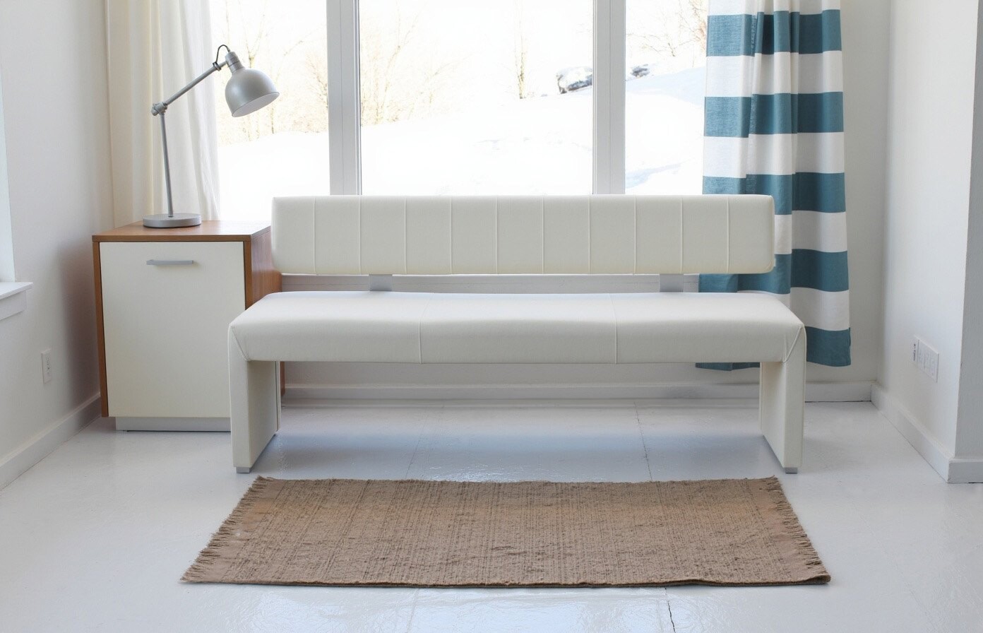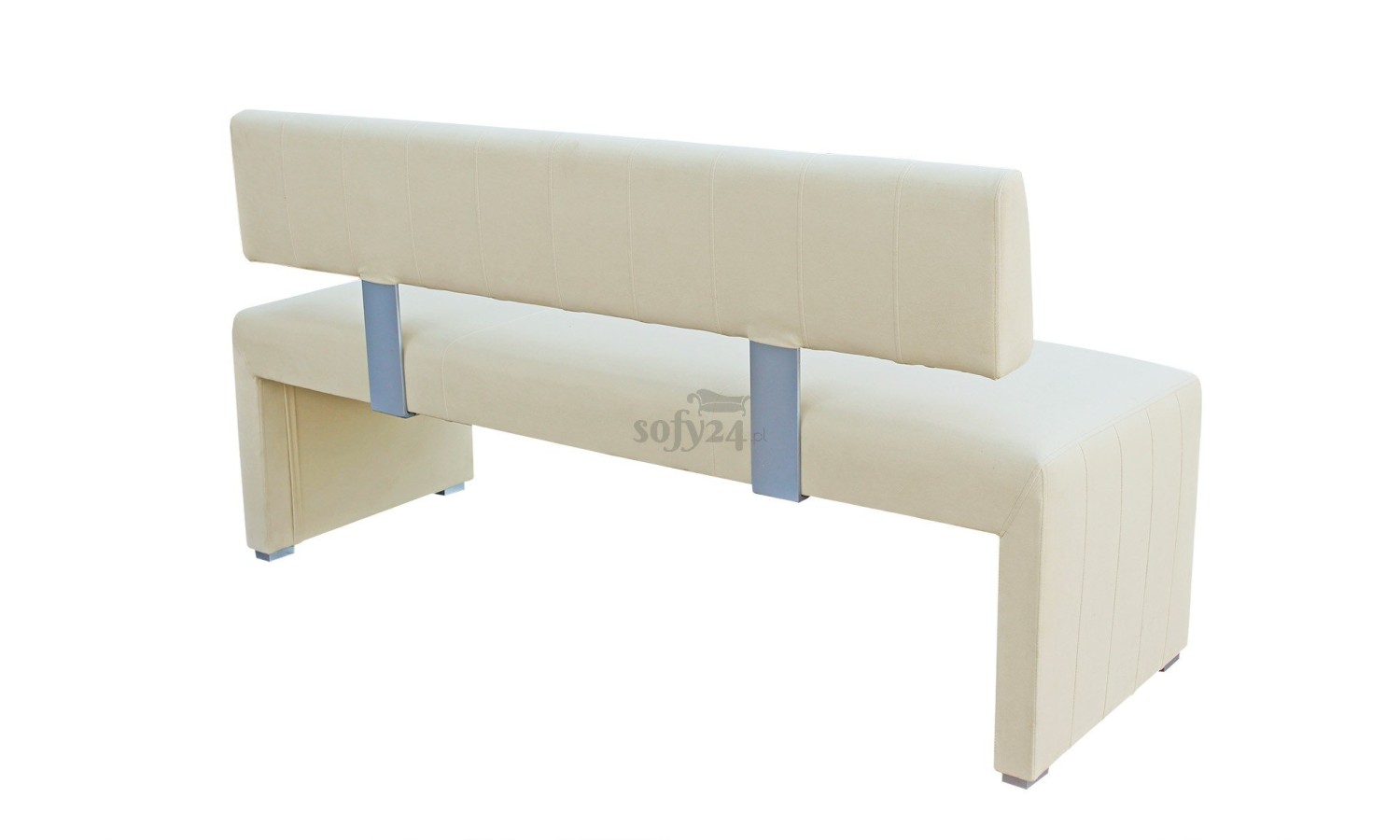 Ciekawa, niebanalna i bardzo efektowna nowoczesna ławka Nefron jest meblem przeznaczonym do wnętrz, w których nie ma wystarczającej powierzchni do wstawienia przestronnych kanap i foteli. To model sprawdzający się w korytarzach, holach, dużych przedpokojach, ale również w kuchni jako siedzisko do stołu jadalnego. W kompozycji wyróżnia się prosta konstrukcja oparta na czterech płaskich, przypominających klocki elementach, które połączono w formę przypominającą mostek i uzupełnioną o oparcie. Każda z części ławki została wykończona tapicerką z przeszyciami tworzącymi niezbyt szerokie pasy, dzięki którym powstaje interesująca, urozmaicająca mebel faktura. Elementem, który zwraca uwagę jest też charakterystyczny kontrast pomiędzy solidnym, grubym siedziskiem a znacznie delikatniejszymi, wyszczuplonymi ku podłodze nogami. Wyróżnia się także oparcie, znacznie węższe i lżejsze optycznie od całości mebla. Atutem modelu jest możliwość zamówienia go w jednej z wielu szerokości, dlatego ławka może być doskonale dopasowana do przeznaczonego jej miejsca, również w przestrzeni czy narożniku obok drzwi. Nowoczesna ławka Nerfon to mebel nowoczesny, bardzo wygodny, doskonale dobrany stylem zarówno do wnętrz minimalistycznych, jak i do aranżacji klasycznych.