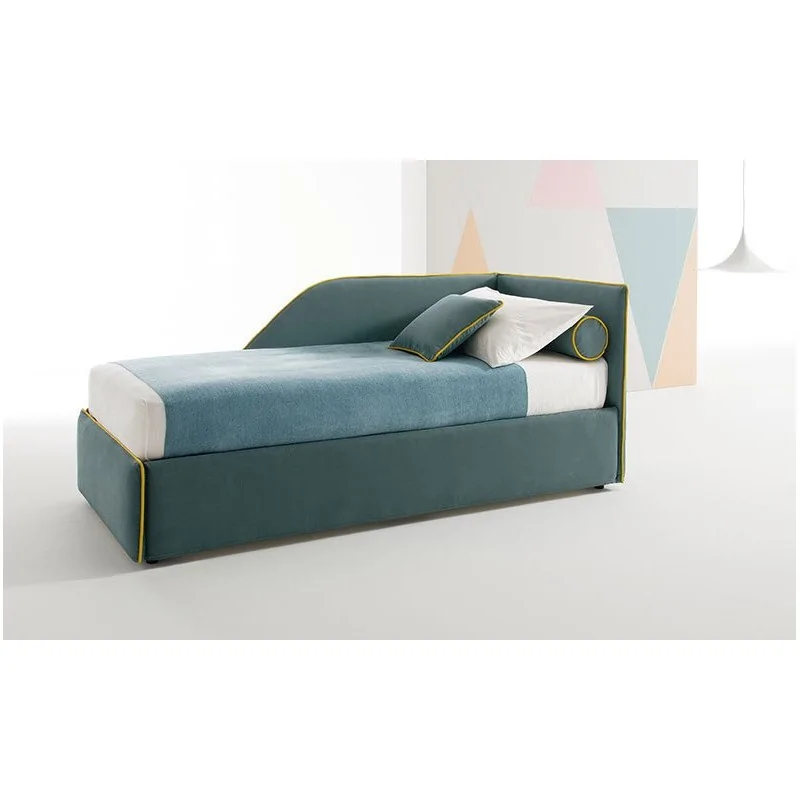 Łóżko młodzieżowe Nadir to ciekawa propozycja dla tych, którzy chcą urządzić sypialnię funkcjonalną i nowoczesną. Model ten skupia w sobie wszystkie elementy, jakie wyróżniają ponadczasowy styl wykończenia oraz modne wzornictwo typowe dla sypialni nastolatka. Łóżko młodzieżowe Nadir wyposażone jest w drewniany stelaż, który opiera się na prostokątnej skrzyni. Konstrukcja ta w połączeniu z materacem tworzy powierzchnię do spania. Ze względu na formę, łóżko może pełnić również funkcję sofy, tworząc w dzień wygodne miejsce do odpoczynku. Łóżko młodzieżowe Nadir z dwóch stron otoczone jest modnym oparciem, które wpływa na designerski wygląd całości. Dzięki temu mebel prezentuje się niezwykle ciekawie. Aby mógł on perfekcyjnie skomponować się z pozostałym wystrojem pokoju, umożliwiamy dowolną konfigurację materiału obiciowego. Wybrać można zarówno kolor, jak i teksturę tkaniny. Łóżko młodzieżowe Nadir to mebel uniwersalny, który wciąż będzie modny, nawet jeżeli trendy w branży wnętrzarskiej ulegną zmianie. Aby dodać mu charakteru, można wykorzystać ciekawe dodatki, np. ozdobne poduszki czy narzutę, dzięki którym łóżko młodzieżowe Nadir będzie zachwycać swoim wyglądem. Do mebla można dobrać pasujący materac o odpowiednim stopniu twardości.