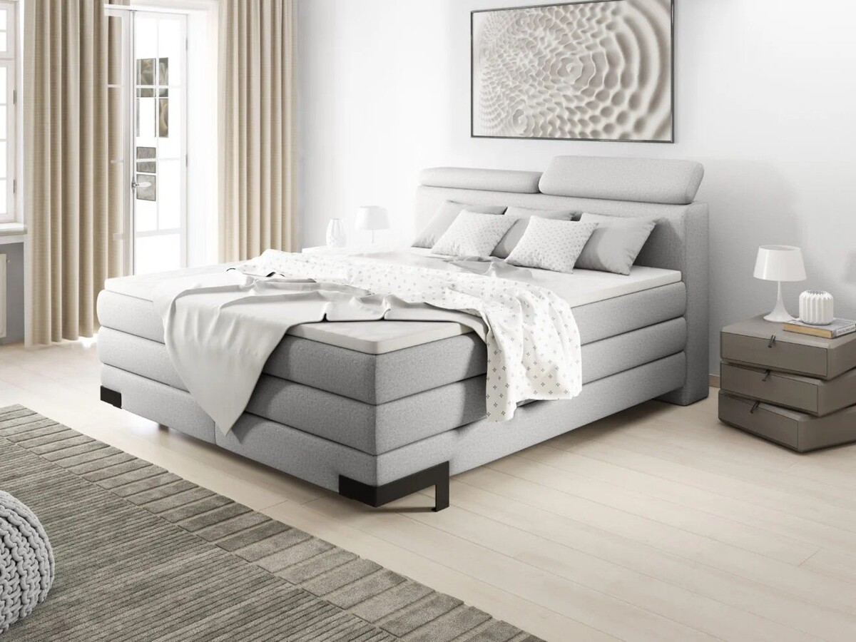 Łóżko kontynentalne Sandor z pojemnikiem to rodzaj mebla do sypialni, w którym zastosowano funkcjonalne rozwiązania użytkowe. Model ten łączy w sobie wszystkie najważniejsze zalety, jakimi powinno wyróżniać się nowoczesne łóżko. Najważniejszą jego cechą jest duża powierzchnia spania osadzona na stabilnej konstrukcji. Stelaż został wyposażony w aż trzy wygodne materace, które są tak wyprofilowane, aby dopasowywały się do pozycji ciała. Łóżko kontynentalne Sandor z pojemnikiem posiada dodatkowo regulowany zagłówek, dzięki czemu odpoczywanie na nim będzie jeszcze przyjemniejsze. W projekcie tym uwzględniono również duży pojemnik na pościel, co ułatwi utrzymanie porządku w mieszkaniu. Łóżko kontynentalne Sandor z pojemnikiem w całości pokryte jest materiałem, a jego teksturę oraz kolor można zmodyfikować wybierając odpowiedni wariant z naszego wzornika. Osobom, którym zależy na eleganckiej stylistyce możemy zaproponować wykończenie łóżka skórą ekologiczną, dzięki czemu zyska wyniosłego charakteru. Łóżko kontynentalne Sandor z pojemnikiem ze względu na swój klasyczny wygląd sprawdzi się w każdej sypialni, tworząc ciekawy komplet z pozostałym wyposażeniem.