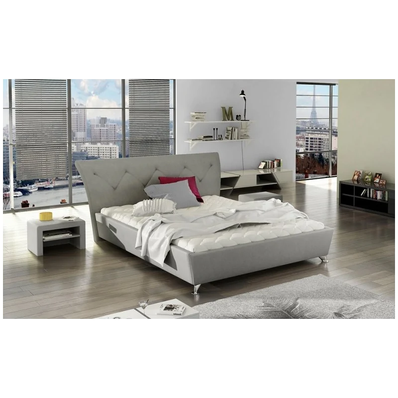 Cechą charakterystyczną łóżka Rumbo jest wysoka jakość wykonania oraz dbałość o wszystkie najdrobniejsze detale. Łóżko to posiada tapicerowany zagłówek, z przeszyciem o nieregularnym kształcie, który nadaje mu efektowny i niecodzienny charakter. Zapewniamy, że wezgłowie będzie idealnym podparciem podczas chwil z ulubioną lekturą, czasopismem, czy podczas seansu filmowego. Stylowe, chromowane nóźki podpierające całą bryłę łóżka, również wpisują się w aktualne trendy w aranżacjach sypialnianych. Zatem, by stworzyć przytulne a zarazem komfortowe miejsce dla nocnego odpoczynku wystarczy wybrać dostosowany do Państwa potrzeb rozmiar łoża, kolor i strukturę materiału, którym będzie obity, a także skompletować wygodny materac i stabilny stelaż - które również znajdą Państwo w naszej ofercie.