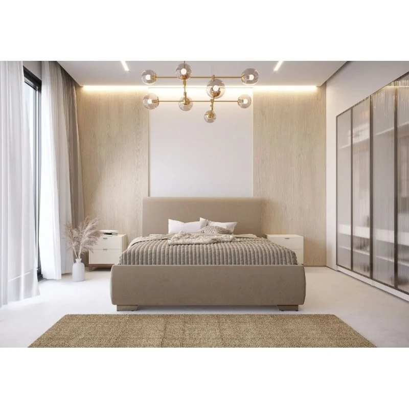 Łóżko tapicerowane Mambo - to prostota i subtelność w jednym. Spodoba się ono osobom lubiącym klasykę i stonowane kształty, które nadają taktownej harmonii we wnętrzu sypialni. Wygodne i smukłe wezgłowie będzie doskonałym oparciem dla zmęczonego po całym dniu ciała. Rozmiar mebla, kolor i struktura tkaniny obiciowej zależy od Ciebie. Do wyboru jest cała gama kolorystyczna, dlatego łóżko zaprojektować możesz według własnego uznania. By stworzyć przyjemną oazę relaksu w swojej sypialni wystarczy dobrać każdy szczegół zgodnie ze swoimi preferencjami i cieszyć się wyrafinowaną oraz niepowtarzalną aranżacją od zaraz!