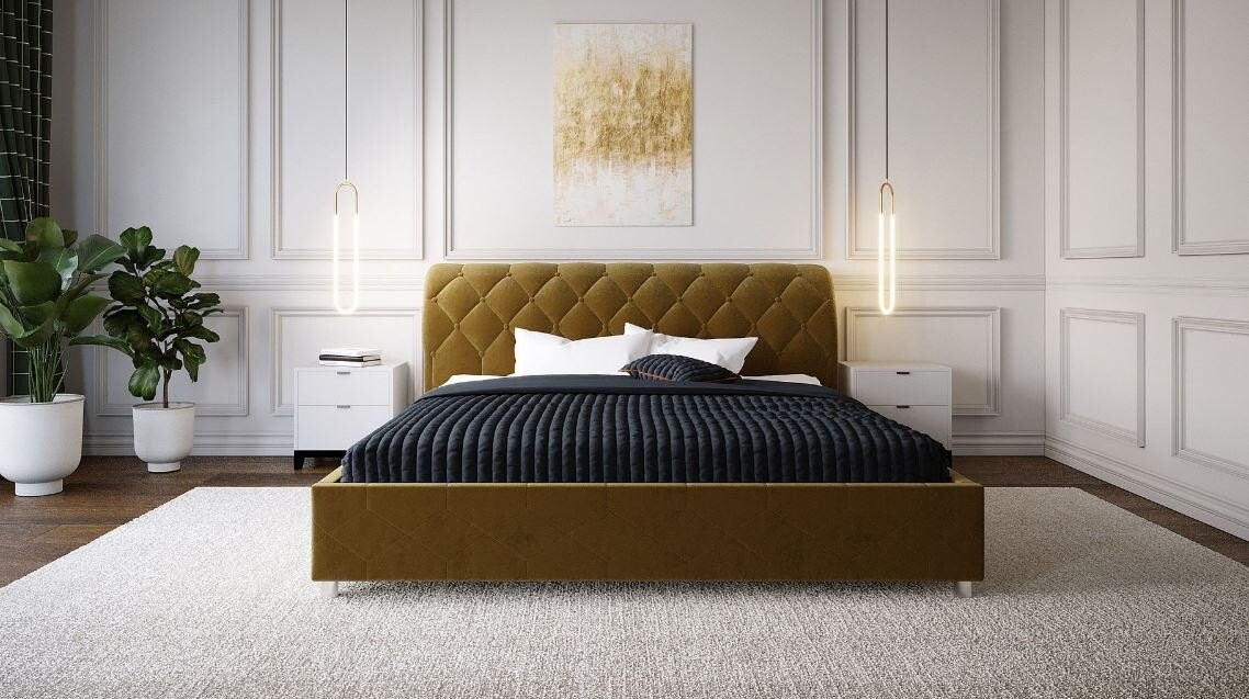 Wytworne łóżko Iris - z pikowanym zagłówkiem