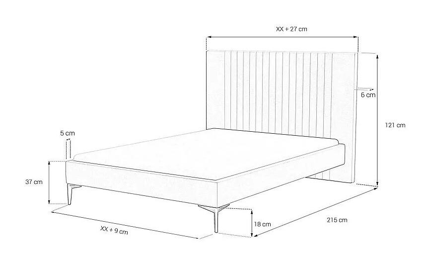 - Szerokość : materac + 27 cm