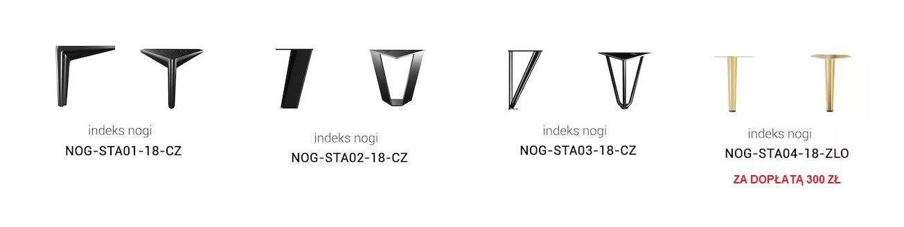 - Możliwość wyboru nóżek spośród 4 dostępnych propozycji (złote nóżki za dopłatą 300 zł)