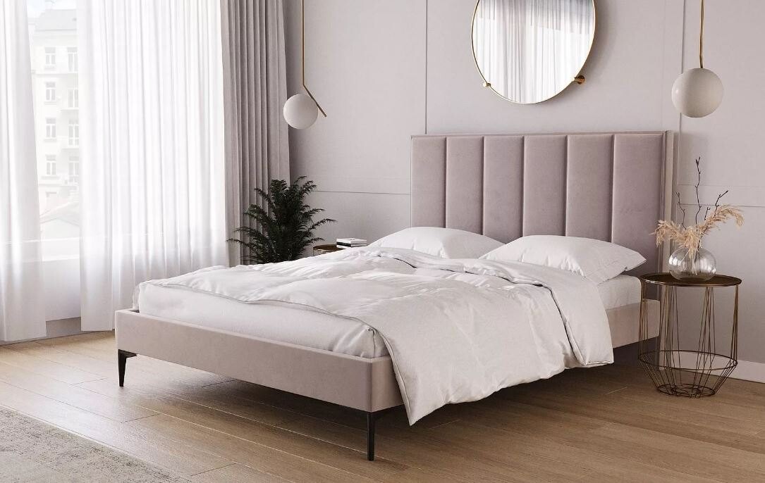 Delikatne łóżko Polina to propozycja dla osób, które potrzebują eleganckiego łóżka tapicerowanego bez pojemnika na pościel. Ten model charakteryzuje się niezwykle zgrabną bryłą, która wygląda lekko i zwiewnie. Łóżko wprost zaprasza do przytulenia się do miękkiej tkaniny obiciowej i wsparcia pleców na pikowanym zagłówku. Właśnie efektowny pikowany zagłówek decyduje o niezwykłym uroku tego mebla. Podobnie jak i ozdobne nóżki. Mebel doskonale zaprezentuje się w każdej sypialni, bez względu na styl całej aranżacji, a także zapewni odpowiedni komfort i dużo miejsca na wygodny sen.