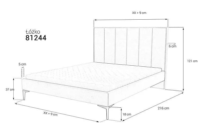 - Wysokość wezgłowia: 121 cm