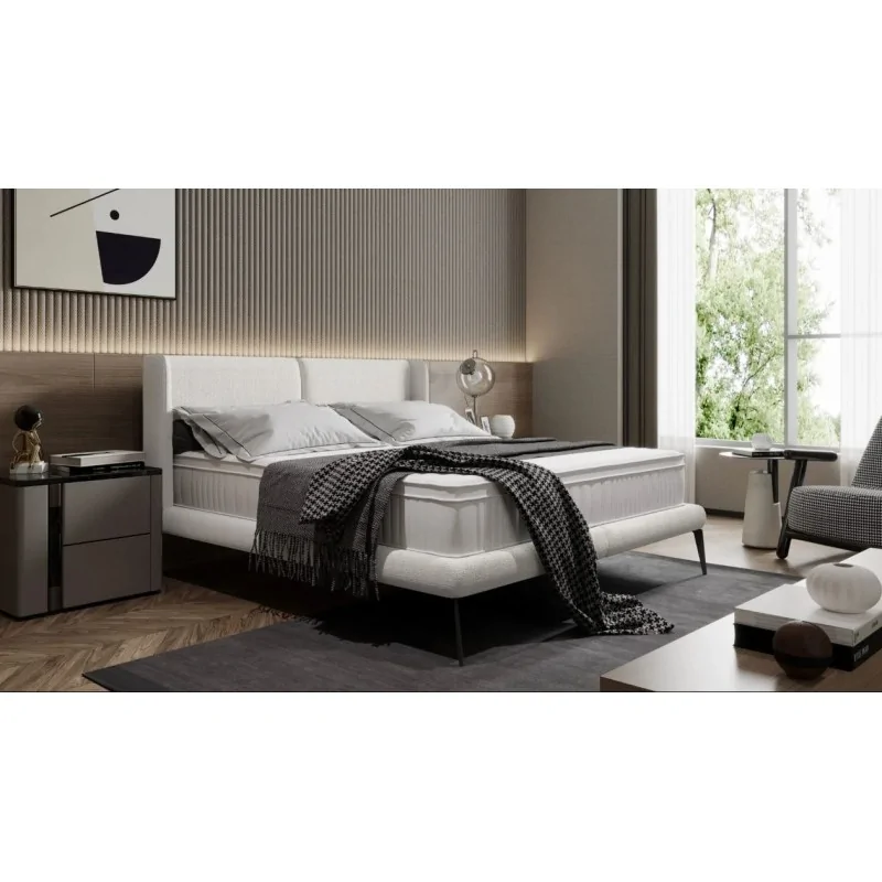 Konstrukcja łóżka Hamilton jest wyjątkowa, gdyż nie wymaga stosowania stelaża pod materac, co czyni montaż niezwykle prostym i szybkim. Choć łóżko nie zawiera materaca, istnieje możliwość jego domówienia, co pozwala na pełne dostosowanie zestawu do indywidualnych potrzeb. Dodatkowo, łóżko dostępne jest z możliwością wyboru innej tkaniny obiciowej, co umożliwia personalizację i idealne dopasowanie do stylu wnętrza. Samodzielny montaż łóżka jest intuicyjny, co dodatkowo zwiększa jego funkcjonalność i praktyczność.