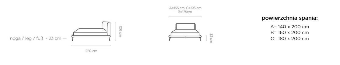 - Powierzchnia spania[cm] : 140 x 200