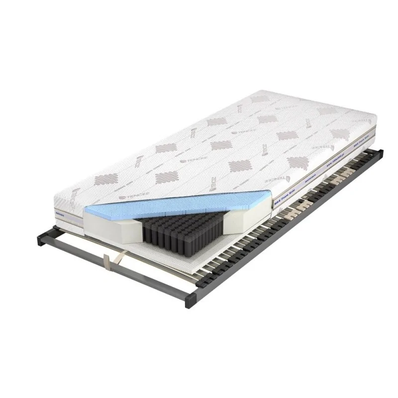 Wkład sprężynowy pokrywa obustronne siatka tapicerska i z jednej strony 3,7 cm warstwa lateksu Talalay Blue o gęstości 60 kg/m3, a z drugiej 40 % naturalny lateks o gęstości 84 kg/m3 i wysokości 3,5 cm. Zastosowany lateks Talalay Intuition Blue jest bardzo elastyczny i zapewni doskonały obieg powietrza za sprawą 99,9 % otwartych komórek. Tak świetny system wentylacji nie pozwoli na rozwój pleśni, roztoczy czy alergenów. Idealnie sprawdzi się u osób chorych na astmę bądź u Alergików. Zapewnia optymalną cyrkulację powietrza, utrzymuje również stałą temperaturę, redukuje pocenie się, oraz oddaje zgromadzone wewnątrz ciepło. Ponadto, dzięki użytym materiałom, każdy centymetr Twojego kręgosłupa będzie podparty punktowo. Materac jest odporny na różnego typu odkształcenia, szybko wraca do pierwotnego wyglądu.