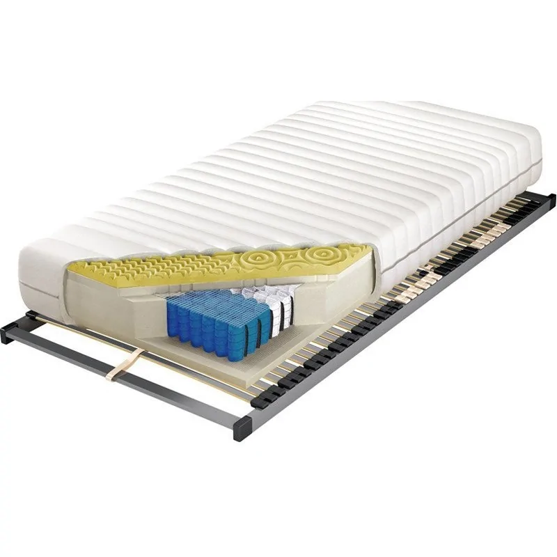 Wkład sprężynowy pokrywa obustronnie siatka tapicerska oraz z jednej strony 3 cm pianka poliuretanowa T - 35 oraz z drugiej 3 cm warstwa lateksu o gęstości ok. 65 kg/m3. Dodatkowo po stornie lateksu znajduje się modelowana termoelastyczna pianka masująca H3 o wysokości 5 cm i gęstości 52 kg/m3. Zastosowany lateks zapewni doskonały obieg powietrza. Tak świetny system wentylacji nie pozwoli na rozwój pleśni, roztoczy czy alergenów. Idealnie sprawdzi się u osób chorych na astmę bądź u Alergików. Zapewnia optymalną cyrkulację powietrza. Ponadto, dzięki użytym materiałom, każdy centymetr Twojego kręgosłupa będzie podparty punktowo. Materac jest odporny na różnego typu odkształcenia, szybko wraca do pierwotnego wyglądu.