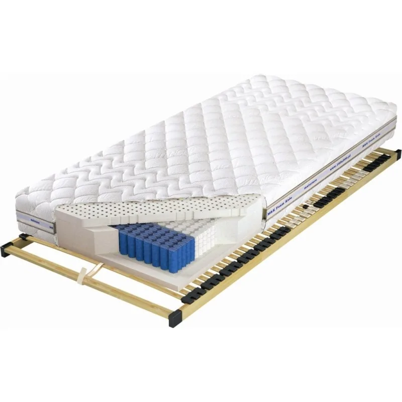 Wkład sprężynowy pokrywa obustronnie siatka tapicerska oraz 5 cm warstwa lateksu o gęstości ok. 65 kg/m3. Zastosowany lateks jest bardzo sprężysty i zapewni doskonały obieg powietrza. Tak świetny system wentylacji nie pozwoli na rozwój pleśni, roztoczy czy alergenów. Idealnie sprawdzi się u osób chorych na astmę bądź u Alergików. Zapewnia optymalną cyrkulację powietrza. Ponadto, dzięki użytym materiałom, każdy centymetr Twojego kręgosłupa będzie podparty punktowo. Materac jest odporny na różnego typu odkształcenia, szybko wraca do pierwotnego wyglądu.
