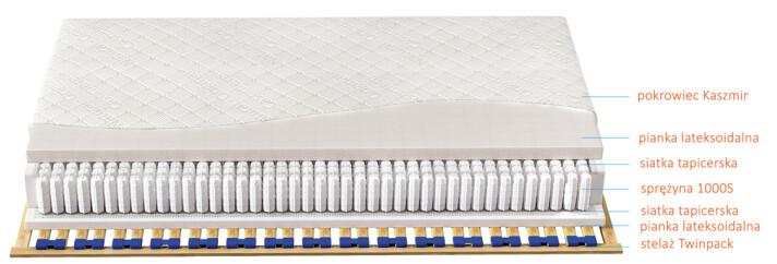 Wkład sprężynowy pokrywa obustronnie siatka tapicerska oraz 5 cm warstwa pianki lateksoidalnej LXI o gęstości ok. 80 kg/m3. Zastosowana pianka lateksoidalna jest bardzo sprężysta i zapewni doskonały obieg powietrza. Tak świetny system wentylacji nie pozwoli na rozwój pleśni, roztoczy czy alergenów. Idealnie sprawdzi się u osób chorych na astmę bądź u Alergików. Zapewnia optymalną cyrkulację powietrza. Ponadto, dzięki użytym materiałom, każdy centymetr Twojego kręgosłupa będzie podparty punktowo. Materac jest odporny na różnego typu odkształcenia, szybko wraca do pierwotnego wyglądu.